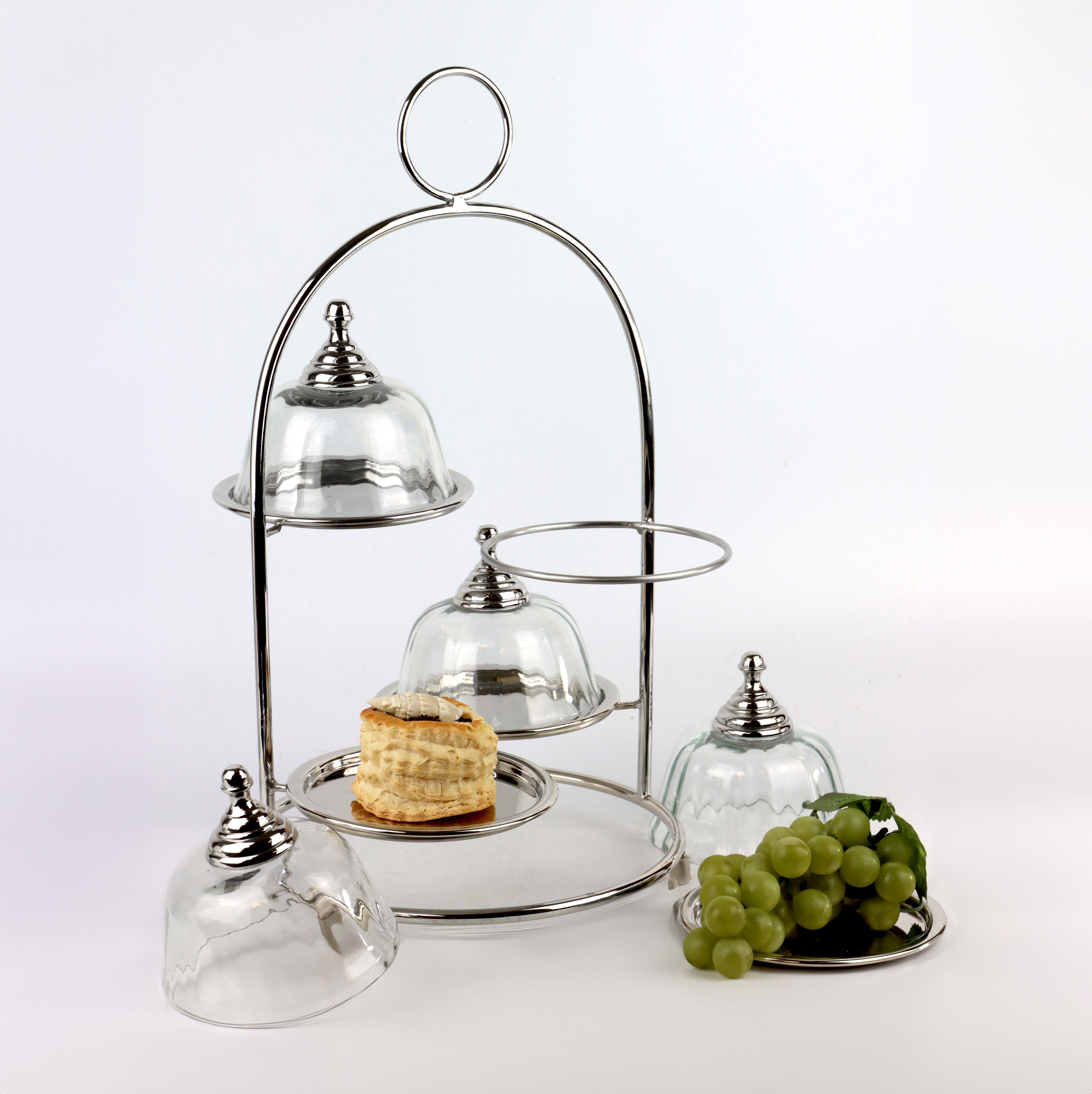 La finitura argentata conferisce al servizio un aspetto moderno e senza tempo che si integra perfettamente in qualsiasi ambiente. Sia che lo presentiate in un salotto arredato con stile, in una spaziosa sala da pranzo o in un elegante negozio, questo set attirerà l'attenzione di tutti. È perfetto per presentare con stile antipasti, dessert o tartine delicate e offre infinite possibilità di composizioni creative.
