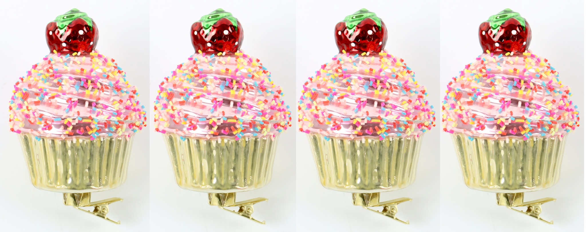 ITScoprite un accessorio indispensabile che arricchirà il vostro arredamento natalizio - articolo numero 8548: il set di 4 pezzi "Pinze per cupcake". Questo attraente set, composto da quattro pinze dal design artistico a forma di invitanti cupcake, è realizzato in vetro e metallo di alta qualità e misura circa 10 cm.