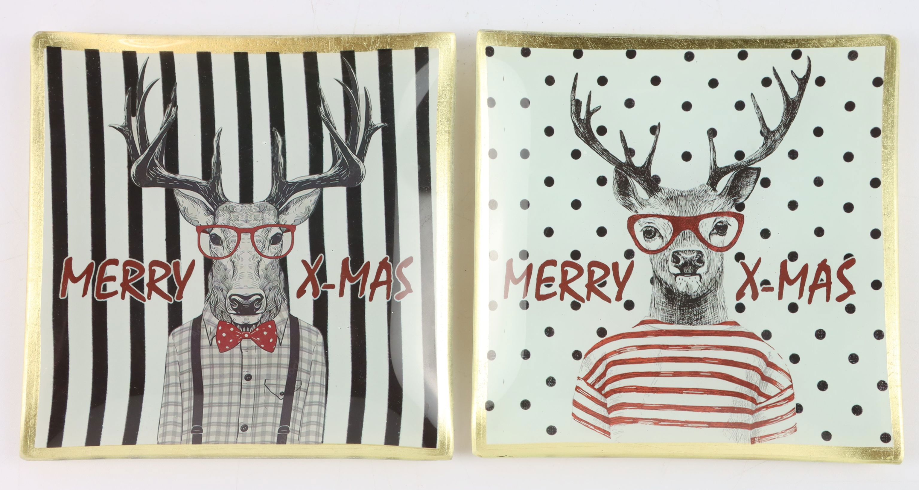 - Set di piatti in vetro a due pezzi con un divertente design a forma di cervo