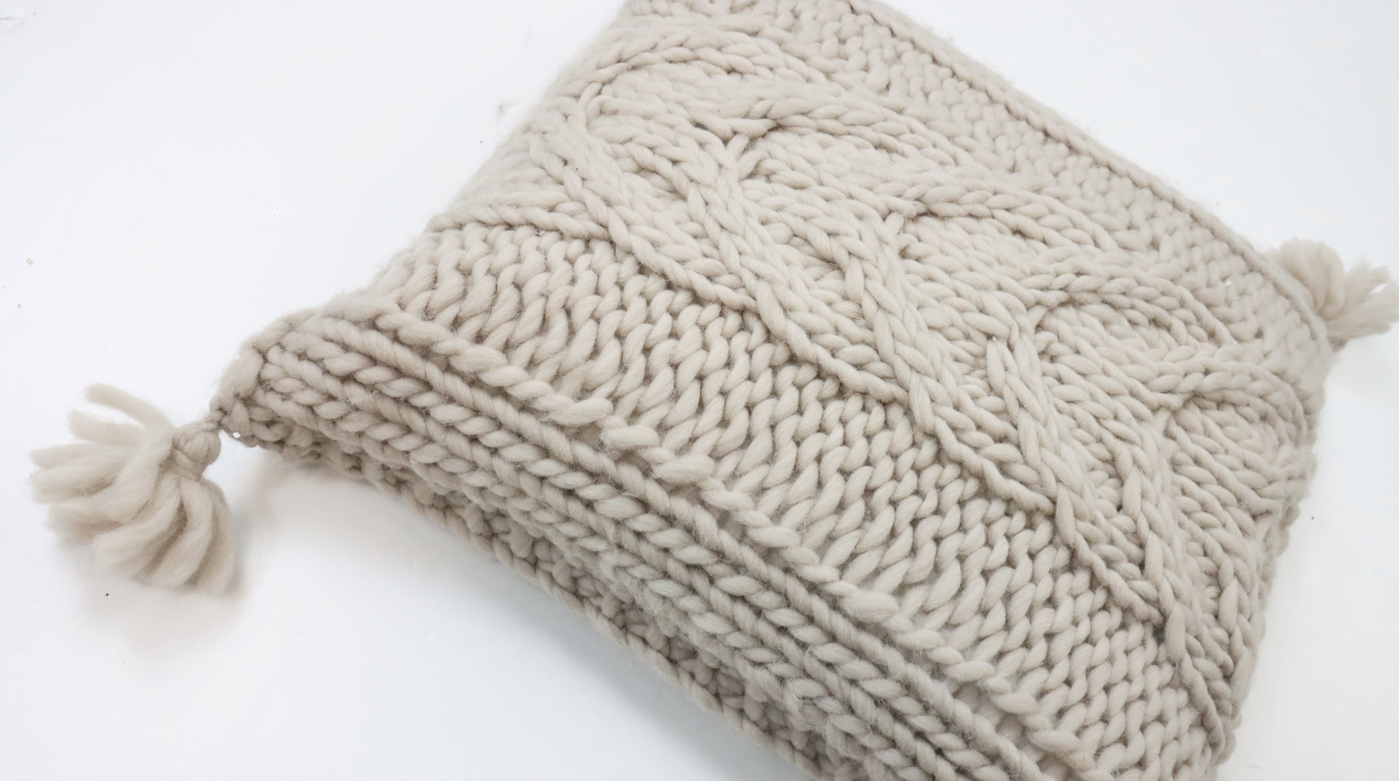 Parole chiave: copricuscino in maglia, cotone, accessorio per la casa, autunno/inverno, stile di vita, accoglienza, vendita al dettaglio, cartoleria.