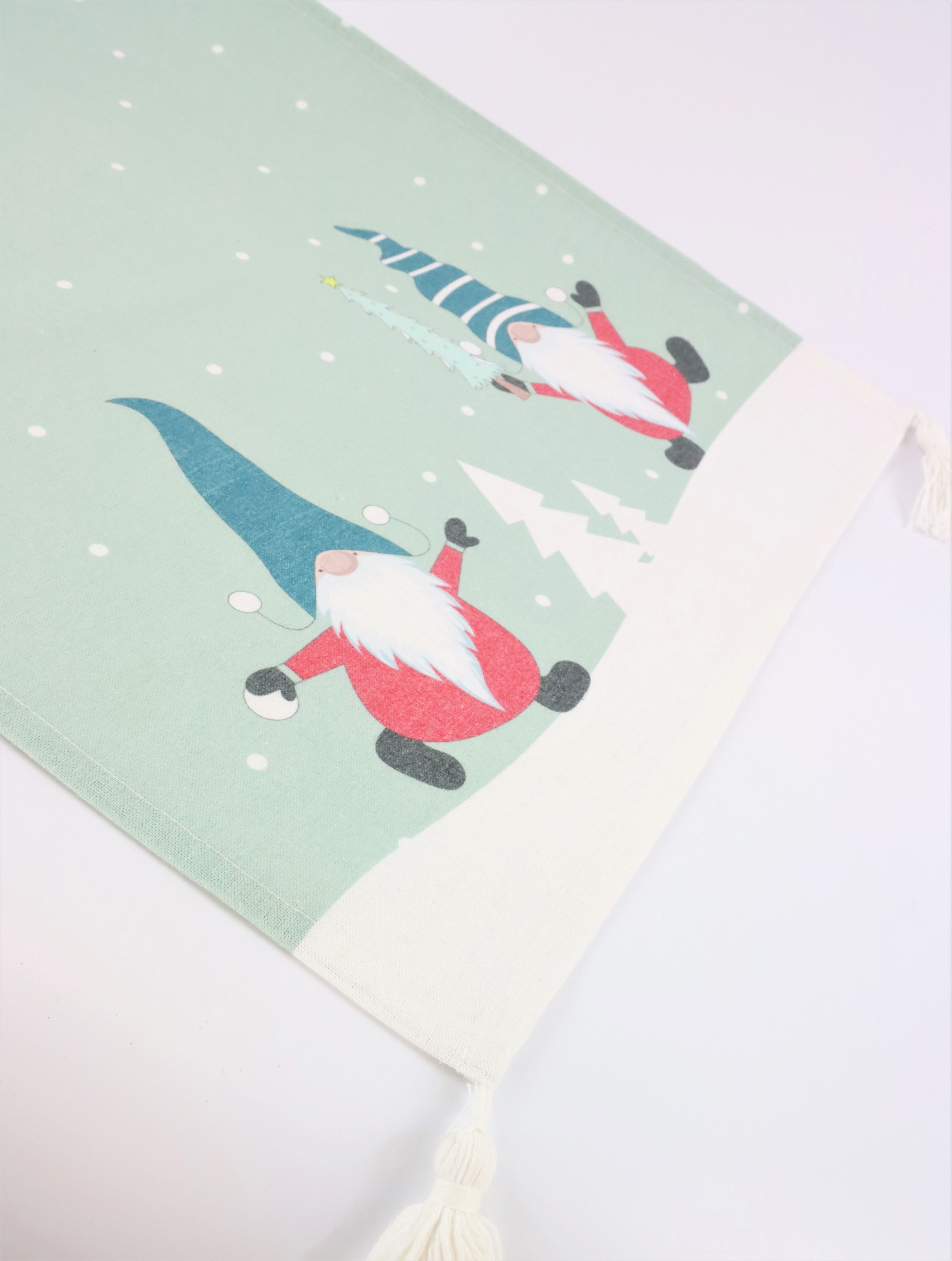 Date un tocco di glamour alle decorazioni della vostra tavola natalizia con il set di runner da tavola "MERRY XMAS". Questo esclusivo set di 2 pezzi, che misura 50x140 cm, combina i tradizionali simboli natalizi con l'eleganza moderna. Lasciate che i motivi senza tempo degli gnomi e degli alberi di Natale, realizzati in misto cotone-poliestere di alta qualità, ispirino i vostri clienti alla ricerca di qualcosa di speciale per la loro casa natalizia.