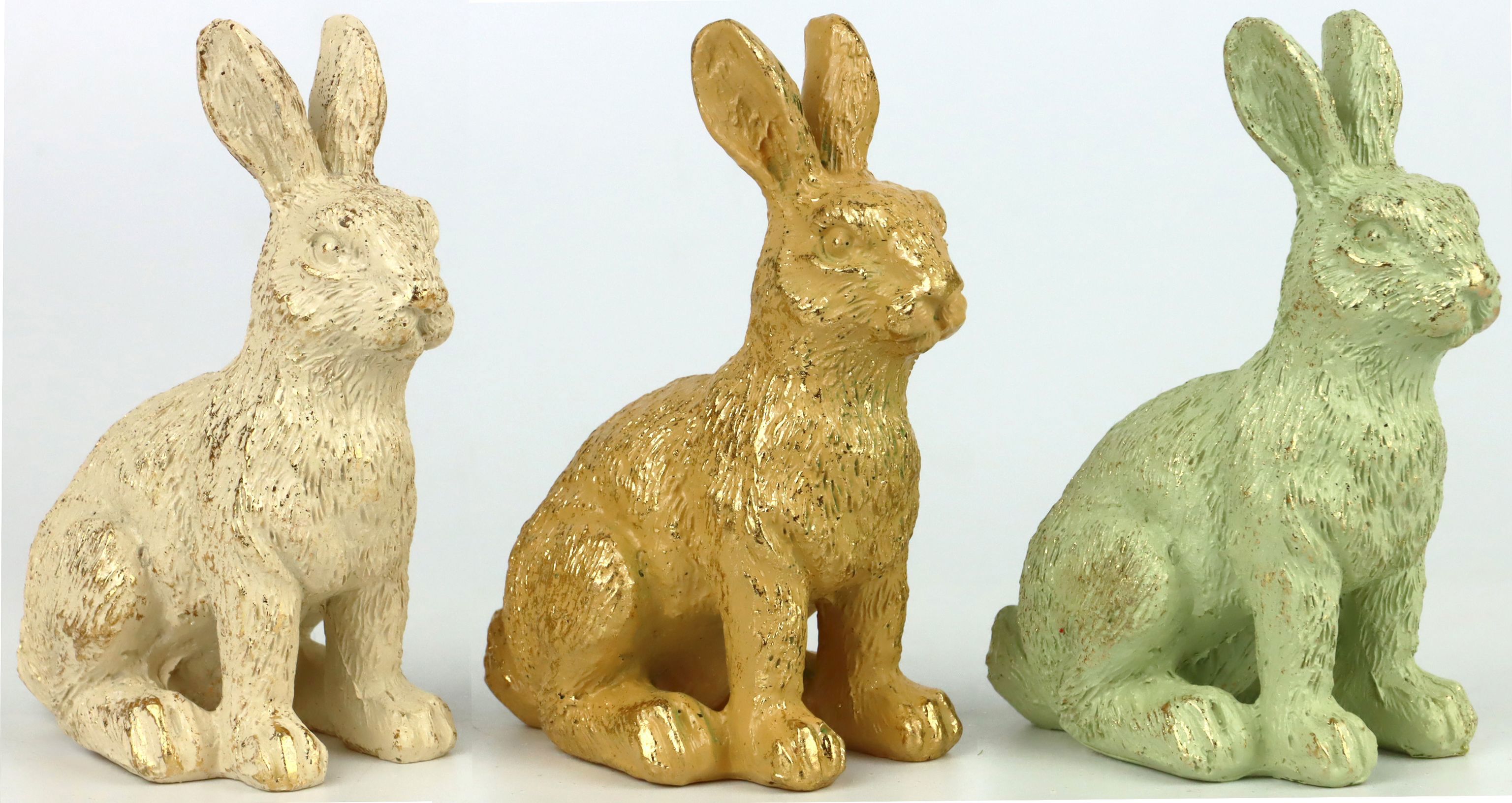 Arricchite il vostro assortimento con il nostro delizioso trio di conigli "ELEGANCE", un must per ogni elegante decorazione primaverile. Questo affascinante set di tre pezzi, composto da figurine di conigli dal design elegante, è realizzato in poliresina resistente ed è perfetto per le decorazioni primaverili e pasquali. Con un'altezza di circa 11 cm, questi coniglietti sono l'elemento decorativo ideale per aggiungere un tocco fresco e stagionale a qualsiasi spazio abitativo.