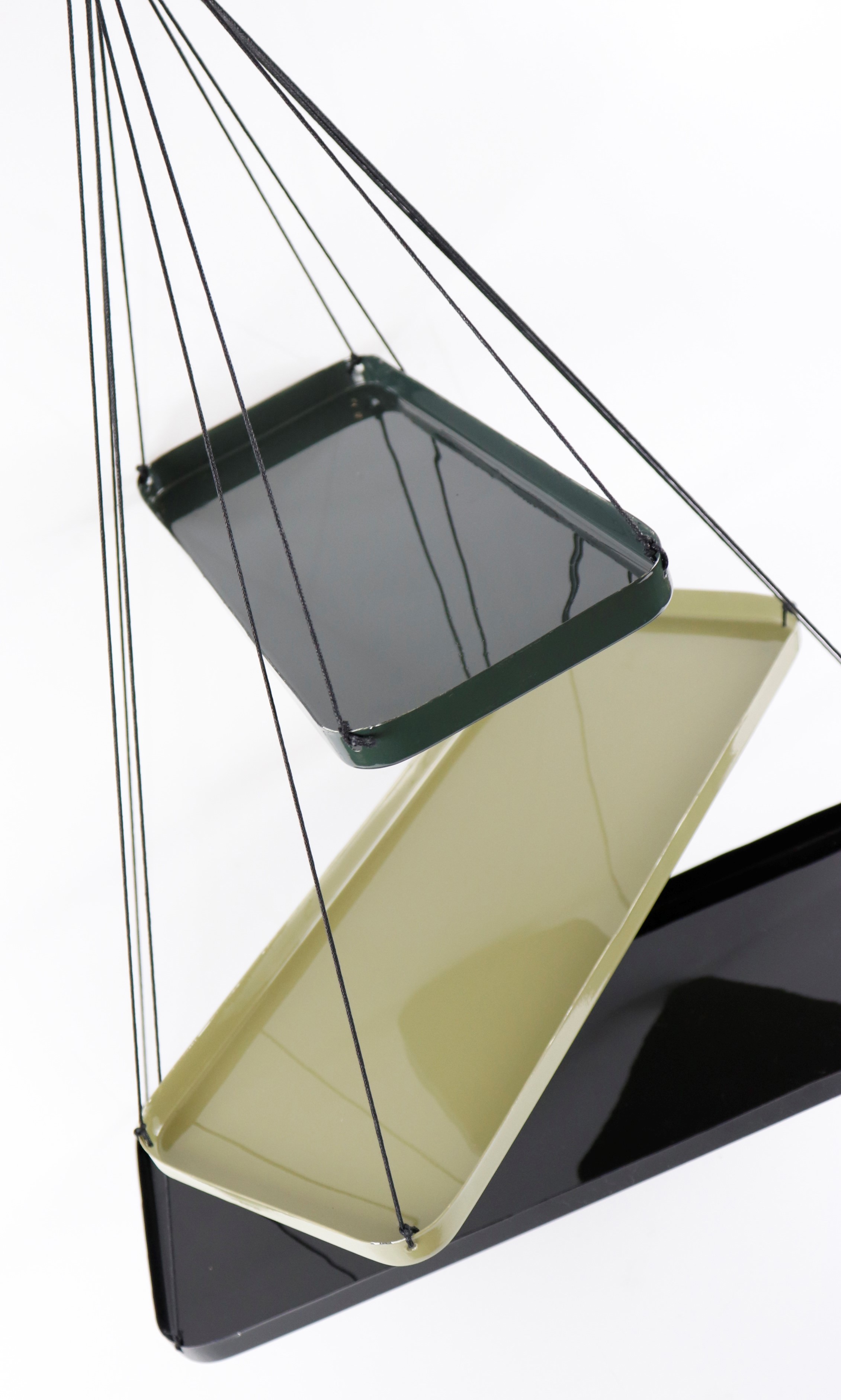 Das Set besteht aus drei Hängetabletts in den trendigen Farben Grün und Schwarz, deren Größen von 51,5 cm, 41 cm bis hin zu 32 cm reichen. Gefertigt aus robustem Metall, gewährleisten die Tabletts eine langlebige Nutzung und Stabilität, um sowohl leichte als auch schwere Objekte sicher zu halten. Diese Vielseitigkeit macht die Hängetabletts „Deluxe“ zur idealen Wahl für die Präsentation einer Vielzahl von Produkten – sei es Dekoration, Accessoires oder weitere Lifestyle-Produkte.