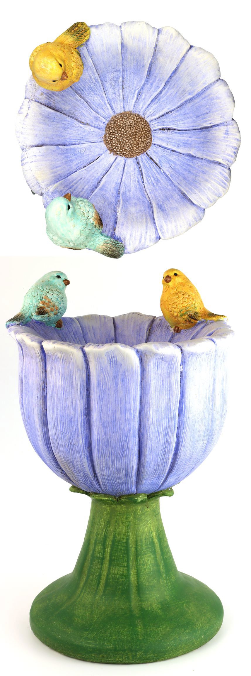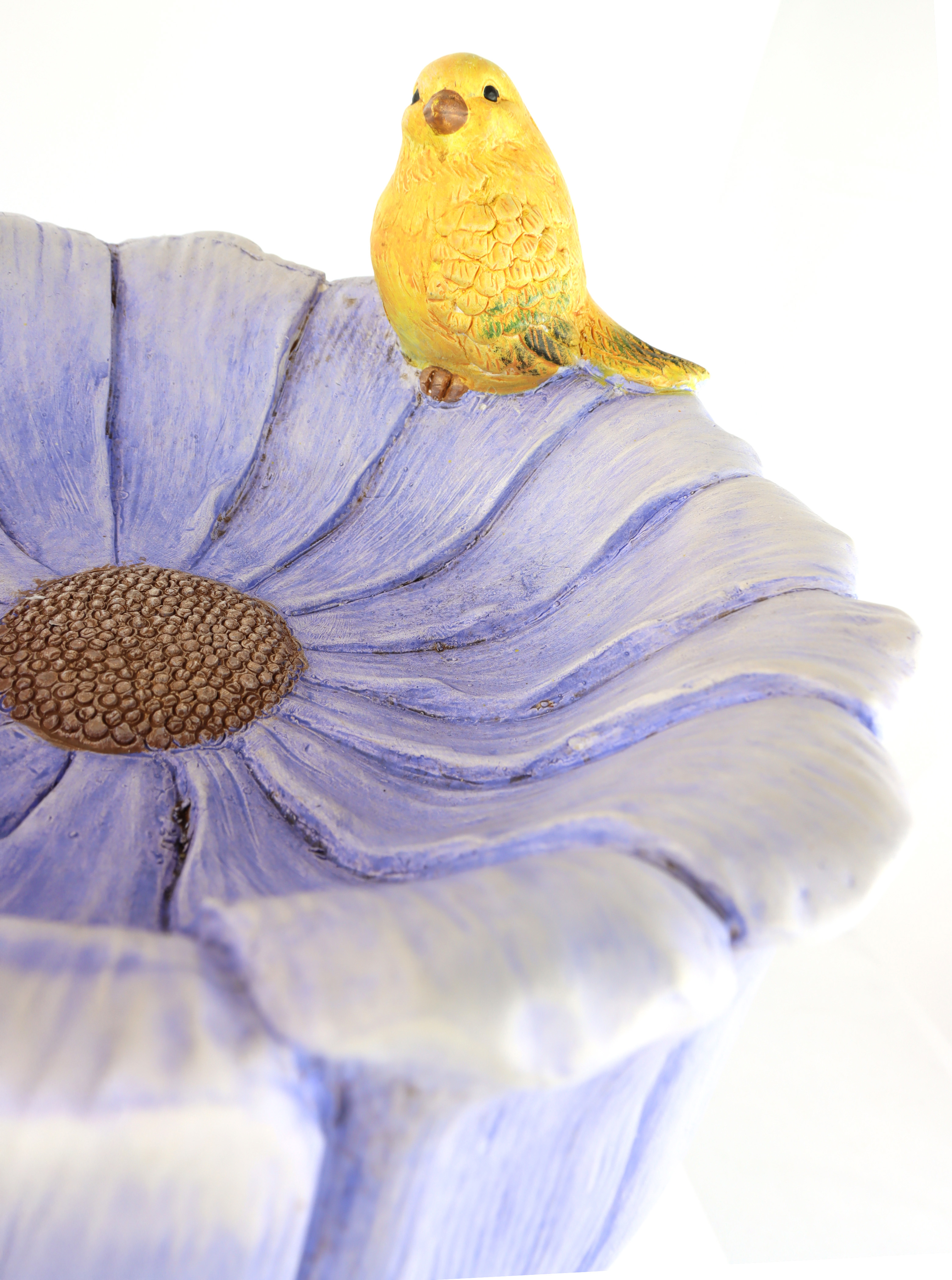 Das elegante Design in Blumenform wird durch einen liebevoll gestalteten blauen Vogel ergänzt, wodurch das Gesamtbild zusätzlich aufgewertet wird. Diese detaillierte Gestaltung macht die Vogeltränke zu einem besonderen Blickfang in jedem Garten oder auf jeder Terrasse. Die Verwendung von Dolomit verleiht dem Produkt nicht nur eine außergewöhnliche Optik, sondern auch eine hohe Beständigkeit gegen Witterungseinflüsse, was der Langlebigkeit der Vogeltränke zugutekommt.