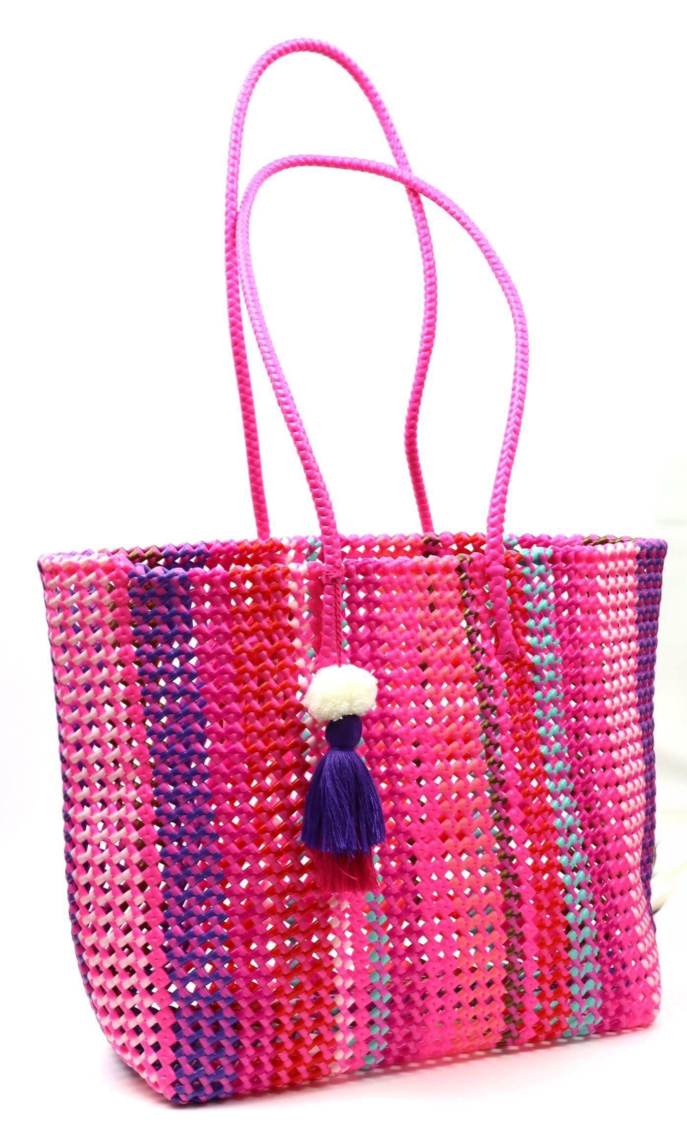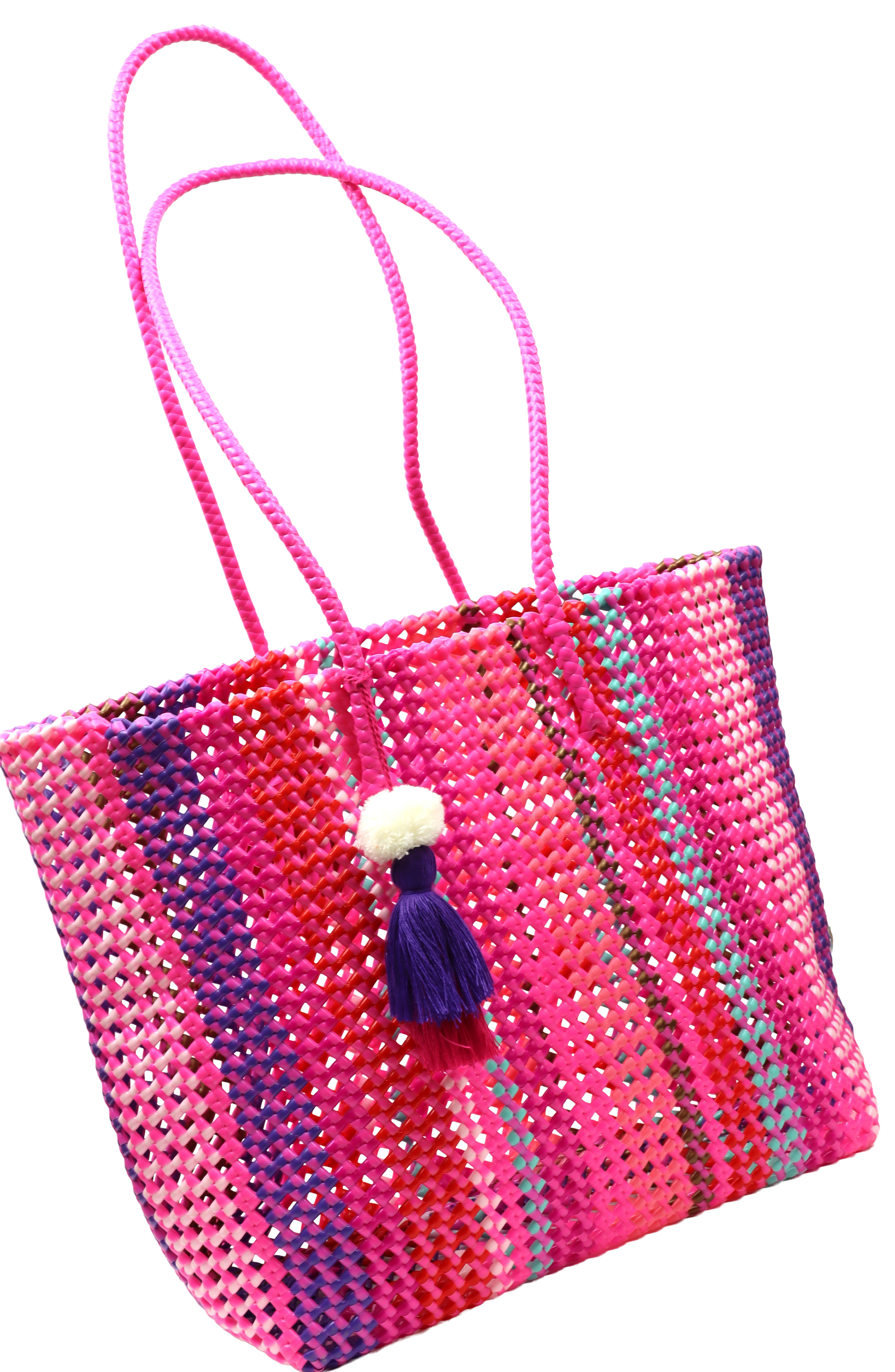 Erleben Sie den Sommer in seiner farbenfrohsten Form mit unserer exklusiven Tasche "Summer Stribes". Diese umweltfreundliche und stilvolle Begleiterin ist das perfekte Accessoire für den Frühling und Sommer. Sie besteht aus recycelten Zuckerrohrpflanzen, was sie nicht nur nachhaltig, sondern auch zu einem Statement für bewussten Konsum macht. Mit einer großzügigen Größe von ca. 45 cm bietet die Tasche ausreichend Platz für alle täglichen Notwendigkeiten, sei es für den Strand, den Wochenmarkt oder einen entspannten Spaziergang in der Stadt.