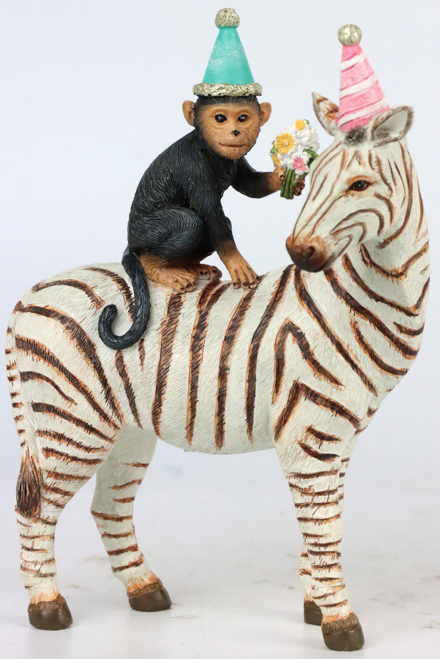 - **Einzigartiges Design**: Zebra mit Affe im Partyhut – ein Hingucker in jeder Dekoration.