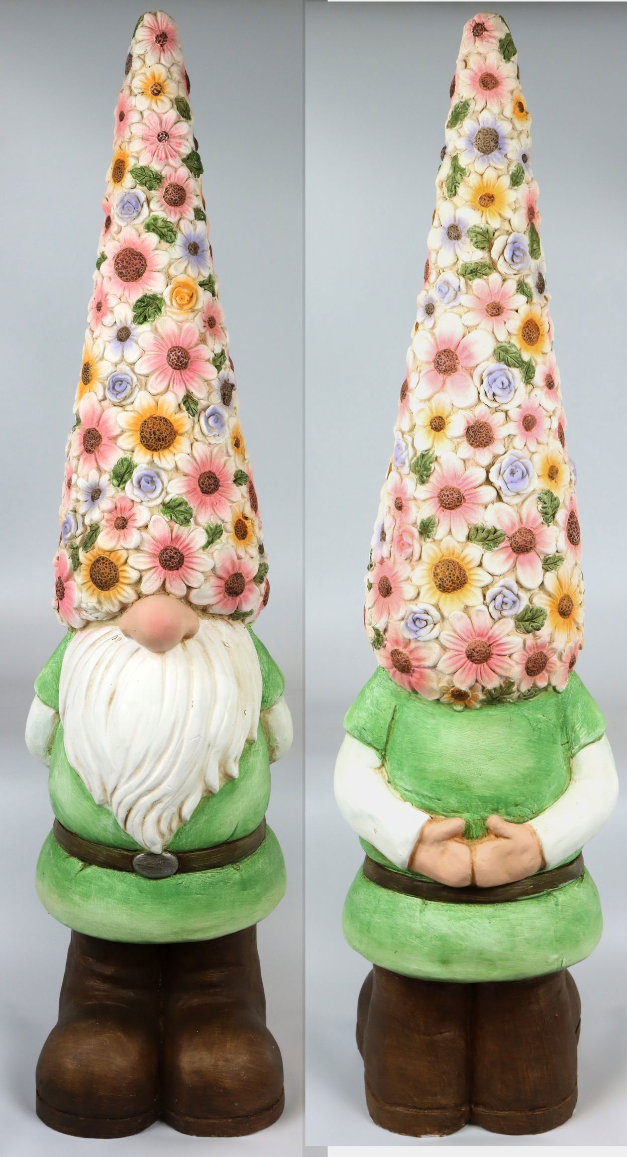 Erleben Sie die Magie des Frühlings und Sommers mit unserem bezaubernden Blütenwichtel – ein einzigartiges Dekorationsstück, das in jedem Garten oder Wohnbereich für eine frühlingshafte Atmosphäre sorgt. Mit einer beeindruckenden Größe von ca. 97 cm zieht diese niedliche Figur aus Clay Fibre garantiert alle Blicke auf sich und ist ein unverzichtbares Highlight in Ihrer saisonalen Dekoration.