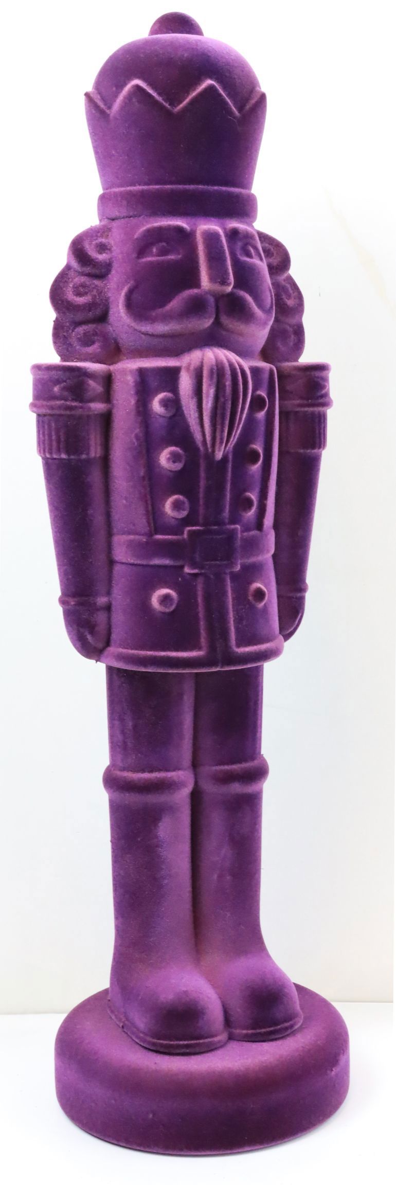 **SEO-relevante Keywords:** Weihnachtsdekoration, Samtnussknacker, lila Nussknacker, Weihnachtsfigur, Nussknacker-Sammlung, luxuriöse Weihnachtsdeko, elegantes Wohndesign, Lifestyle Einzelhandel, festliche Atmosphäre, Schaufensterdekoration.