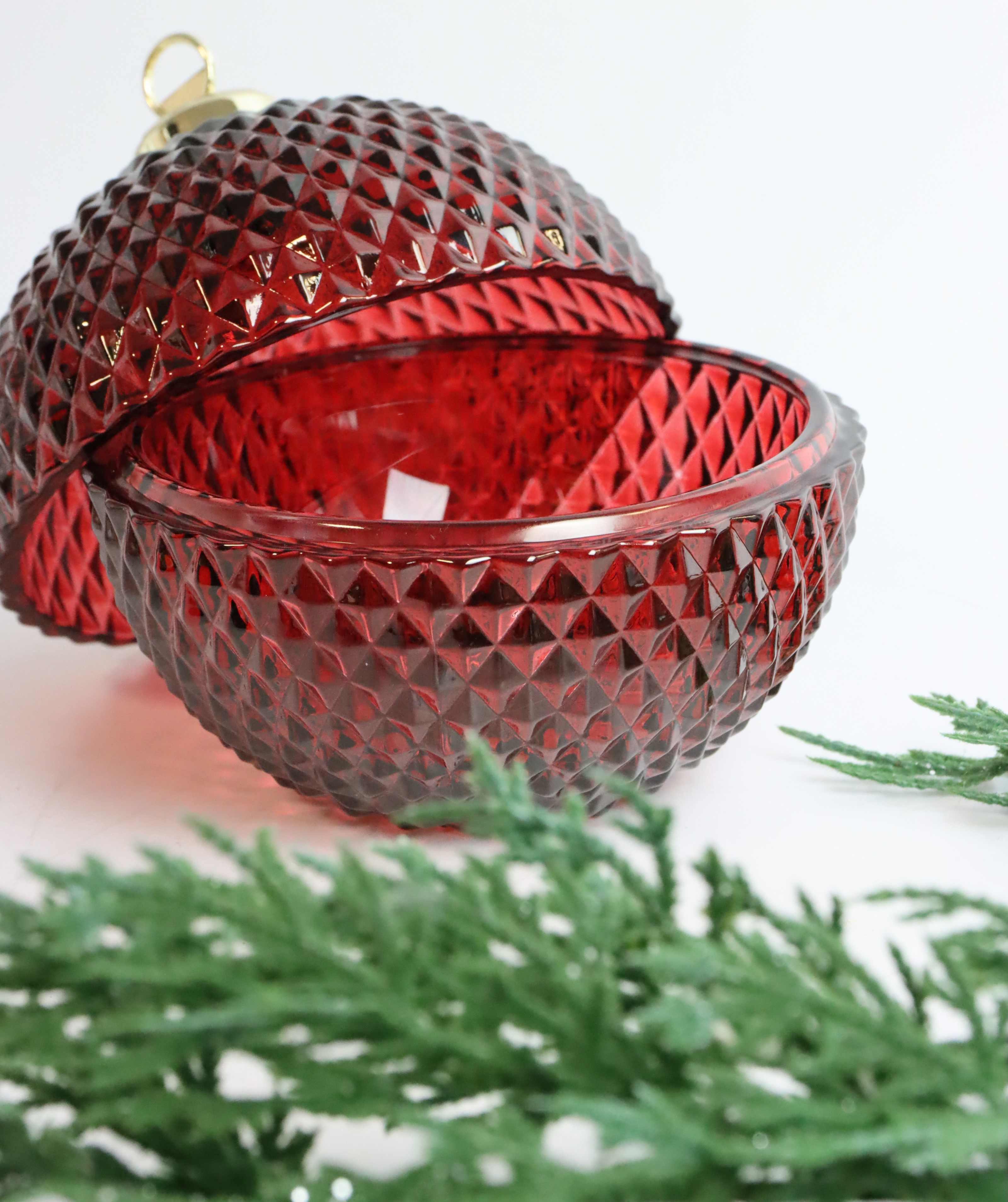 Die transparente Glasdose ist ideal, um kleine Überraschungen oder süße Leckereien optisch ansprechend zu präsentieren. Dank des übersichtlichen Formats ist sie schnell zu befüllen und leicht zu reinigen. Die rote Färbung des Glases hebt den Inhalt besonders hervor und verleiht der Dekoration zusätzlich eine festliche Note. Sie können die Glasdose "ChristmasBall" an einen Zweig hängen, auf einen Tisch legen oder als originellen Christbaumschmuck nutzen. Dabei ist sie stabil genug, um auch in belebten Bereichen dauerhaft ihren Platz zu behalten.