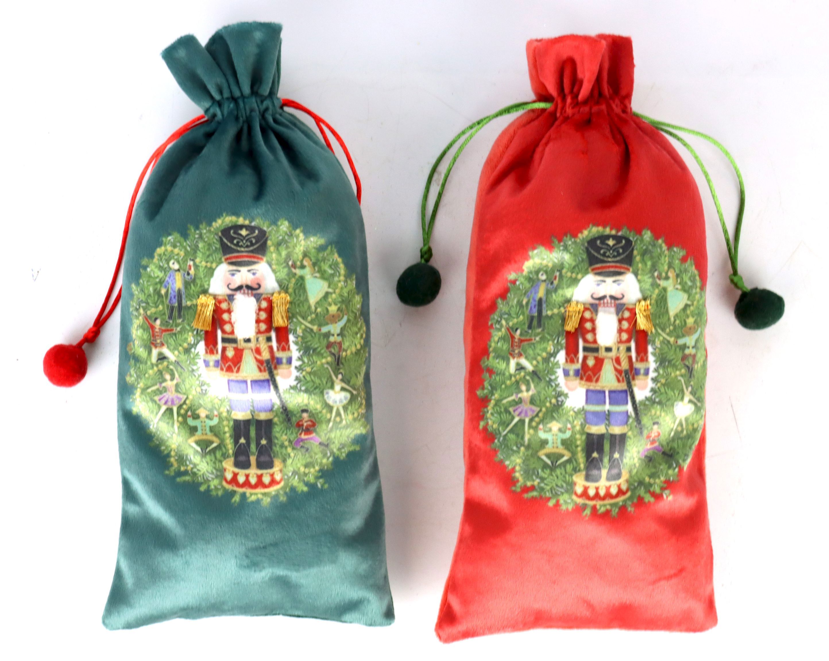 Unsere Beuteltaschen präsentieren sich in einem beeindruckenden Nussknacker-Motiv in den festlichen Farben Petrol und Rot, was sofort für weihnachtliche Stimmung sorgt. Ob als stilvolle Verpackung für Flaschen oder als raffinierte Geschenkidee – die BOTTLEBAGS bezaubern mit ihrer detailreichen Gestaltung und hochwertigen Verarbeitung. Das Nussknacker-Design ist ein zeitloser Klassiker, der jedes Geschenk in den Mittelpunkt rückt und sowohl bei Kunden als auch bei Empfängern bleibenden Eindruck hinterlässt.