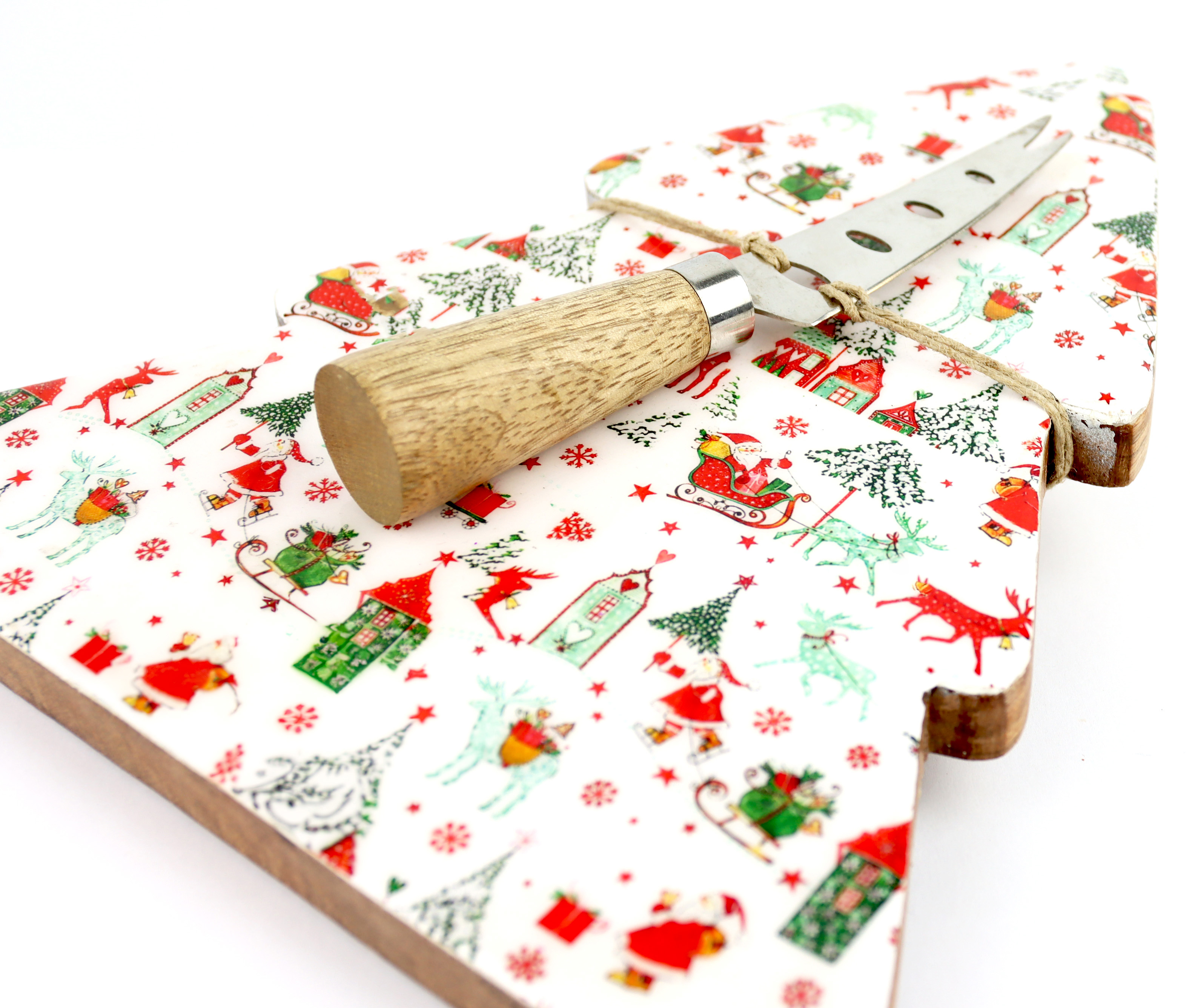 Jedes Set besteht aus zwei Brettern aus robustem Holz, begleitet von einem speziell designten Käsemesser, welches exzellente Schneidleistung bietet. Das Design „HOLLY & SNOW“ kombiniert traditionelle Weihnachtsmotive mit modernem Flair, welches sich harmonisch in jedes Wohnambiente einfügt und garantiert die Blicke Ihrer Kunden auf sich zieht. Mit seiner charmanten Optik ist das HOLZBRETT M.MES "HOLLY & SNOW" nicht nur ein praktisches Küchenutensil, sondern auch ein attraktives Dekorationsobjekt für jede Weihnachtstafel.