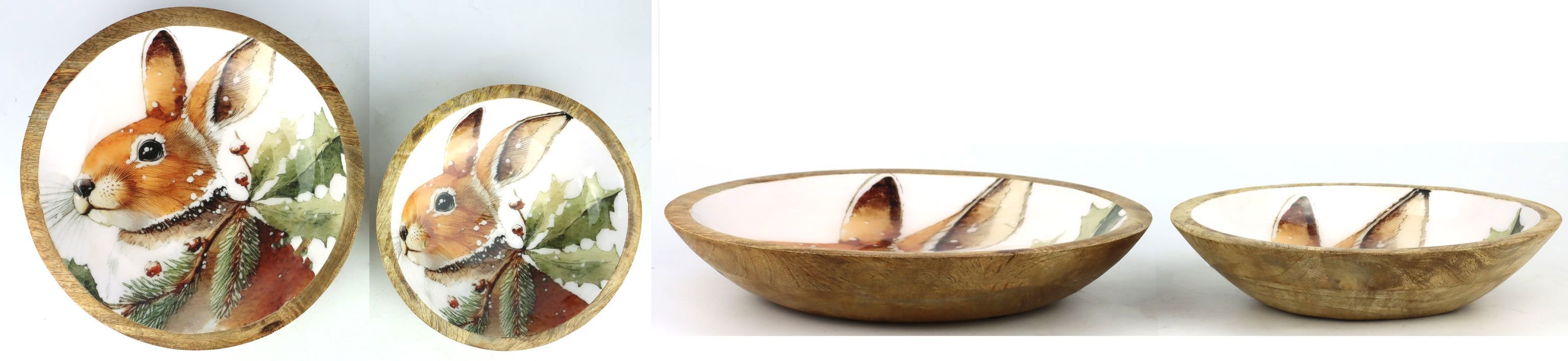 DE**Produktbeschreibung für Holzschalen "Schneehase" S/2**