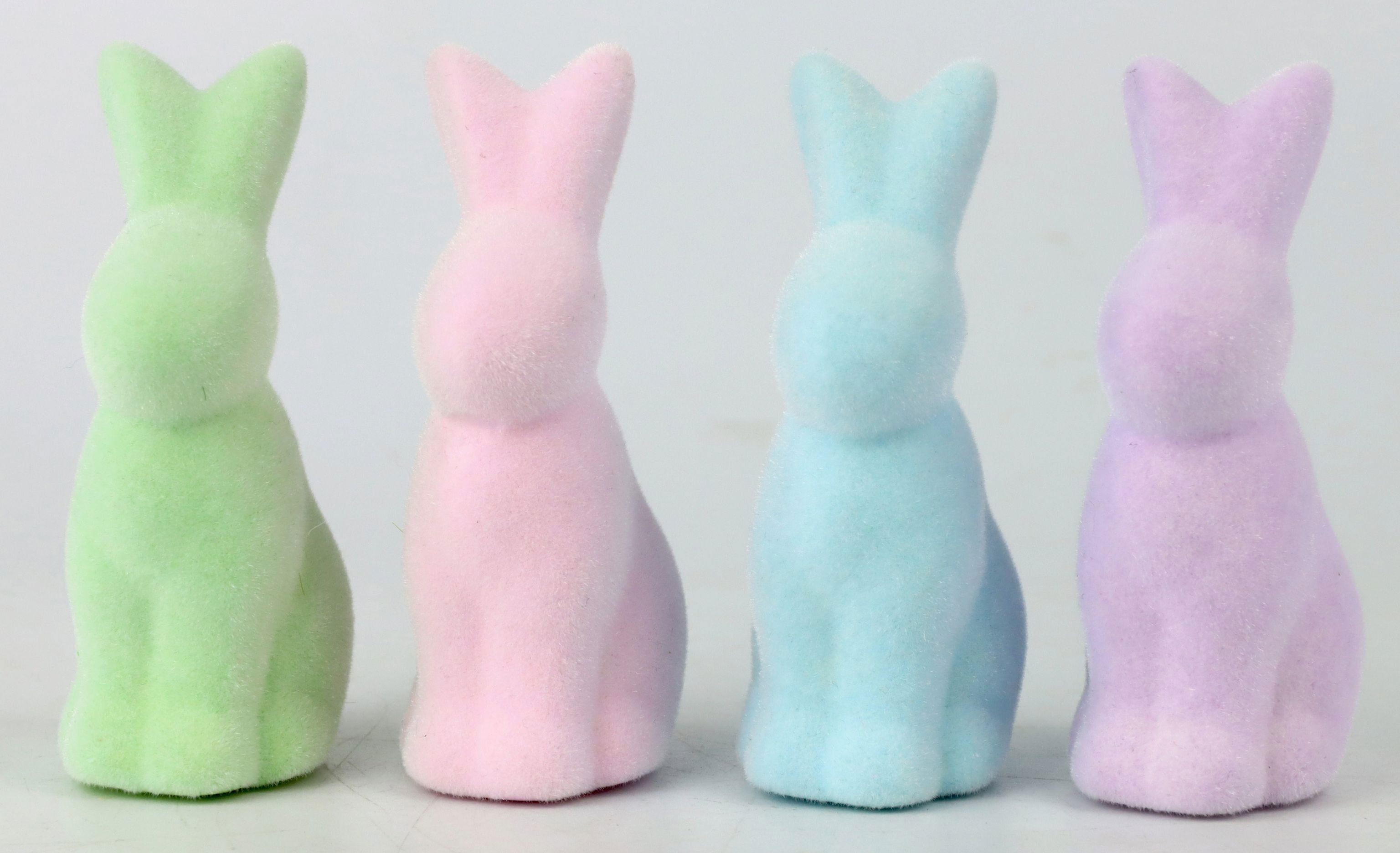 Jedes der vier Hasenfiguren ist kunstvoll aus Porzellan gefertigt und in harmonischen Pastelltönen gehalten. Mit einer Höhe von ca. 8 cm sind diese Dekorationsstücke perfekt geeignet, um sich nahtlos in eine Vielzahl von Einrichtungsstilen einzufügen. Diese Hasenparade steht für Feinheit und Liebe zum Detail und ist ideal, um Fenster, Regale oder Tische in Ihrem Geschäft mit einem elegant-verspielten Akzent zu versehen.