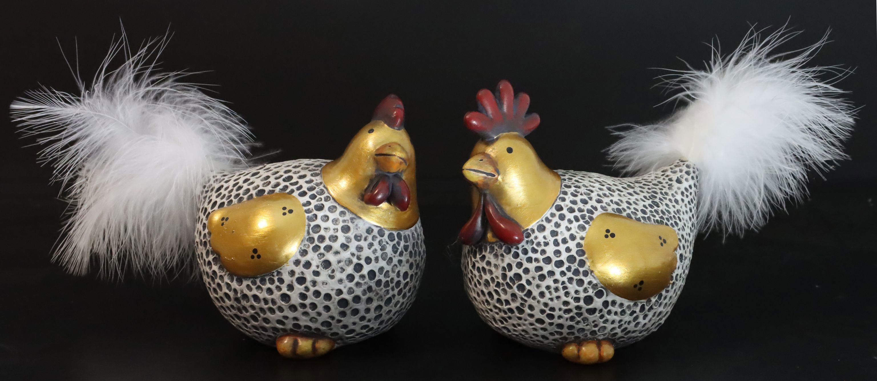 - **Exklusives 2-teiliges Set:** Beeinhaltet moderne Hahn- und Henne-Figuren.