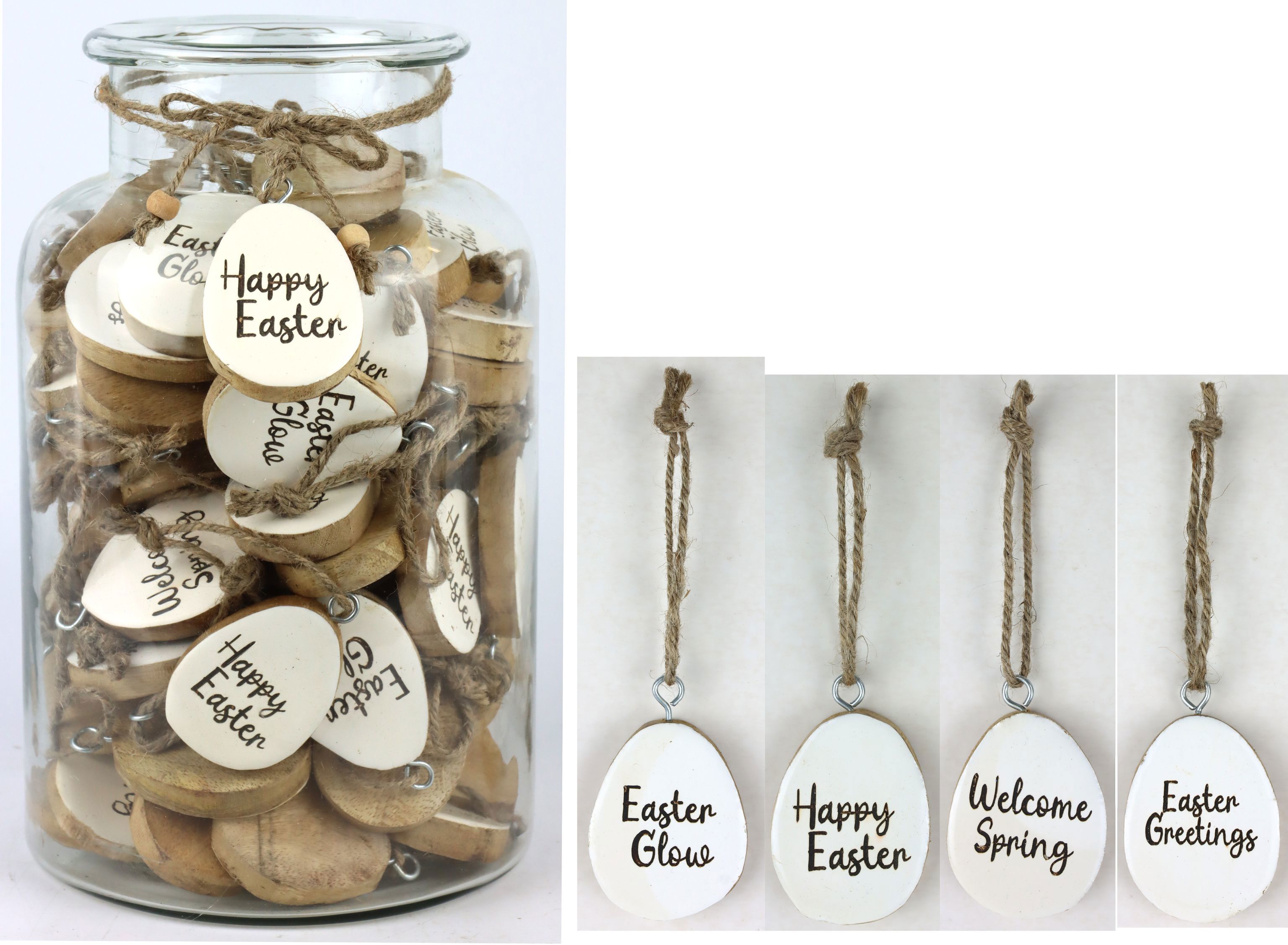Zu Ostern, einer der dekorationsintensivsten Saisonen, ist es essenziell, Produkte anzubieten, die nicht nur die Herzen der Kunden gewinnen, sondern auch ihre hohen Anforderungen an Qualität und Design erfüllen. Unsere Eihänger im Glas S/91 sind genau das Produkt, das dieses Bedürfnis anspricht. Die sorgfältige Verarbeitung und das natürliche Material sprechen Kunden an, die Wert auf nachhaltige und stilechte Deko-Artikel legen.
