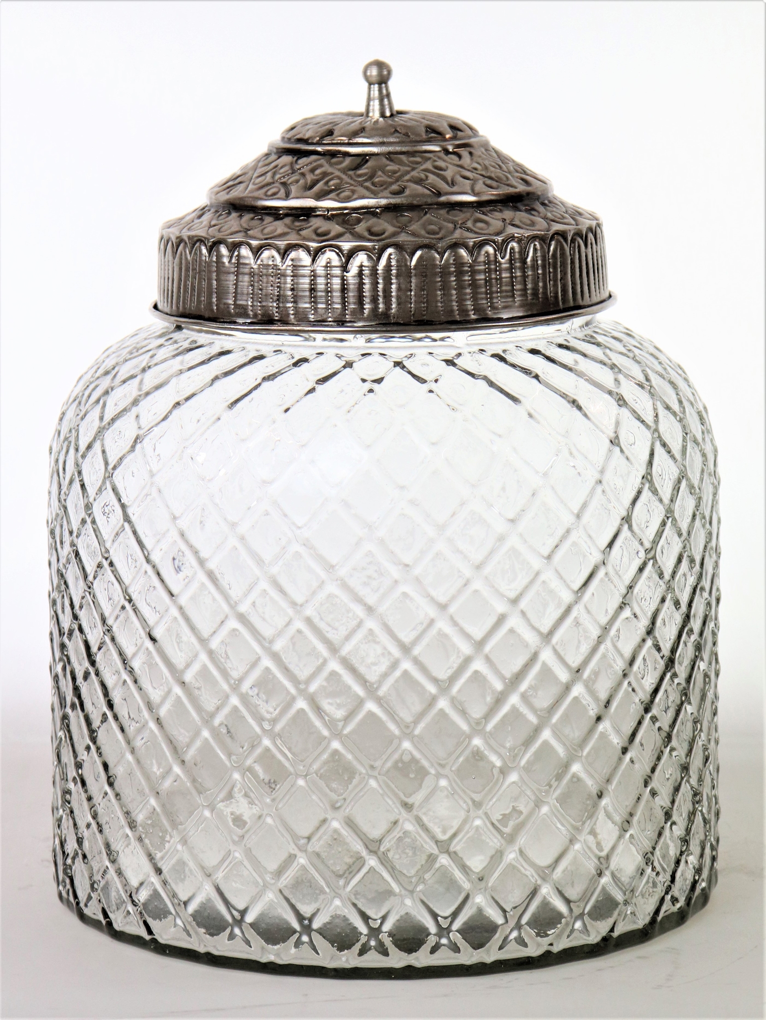Our product is designed to meet the needs of modern stationary retail in the home and lifestyle sector. The "RAVENNA" glass jar is not only a functional element for storing dry food, jewellery or small items, but also adds a luxurious touch to any room. Whether in the living room, kitchen or bathroom - the clear structure of the glass jar harmonises perfectly with the stylishly decorated lid, which features oriental details in silver.