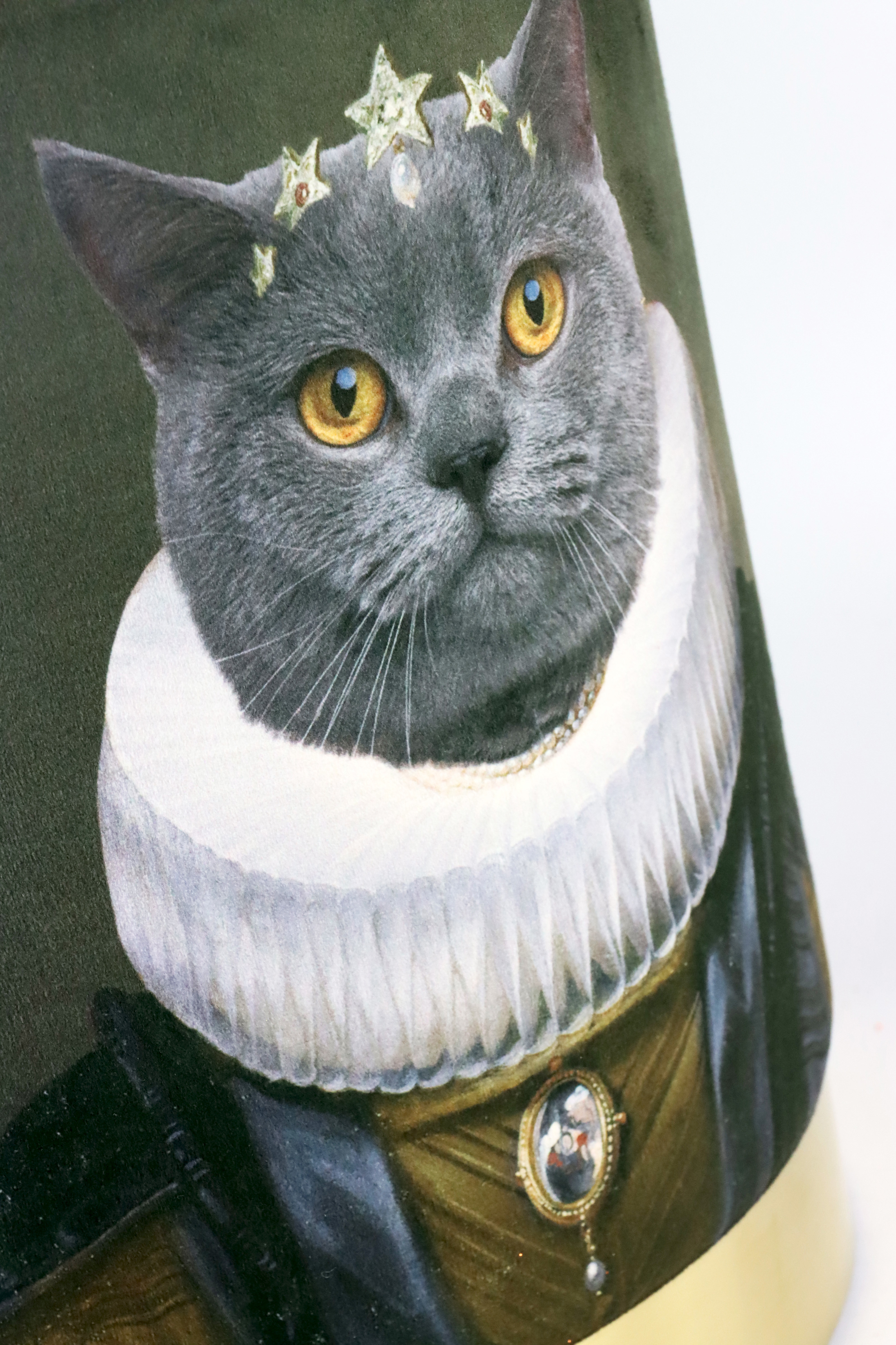 Matching keywords: buy pouf, pouf green, pouf "Queen of Cats", home accessories, retail living.