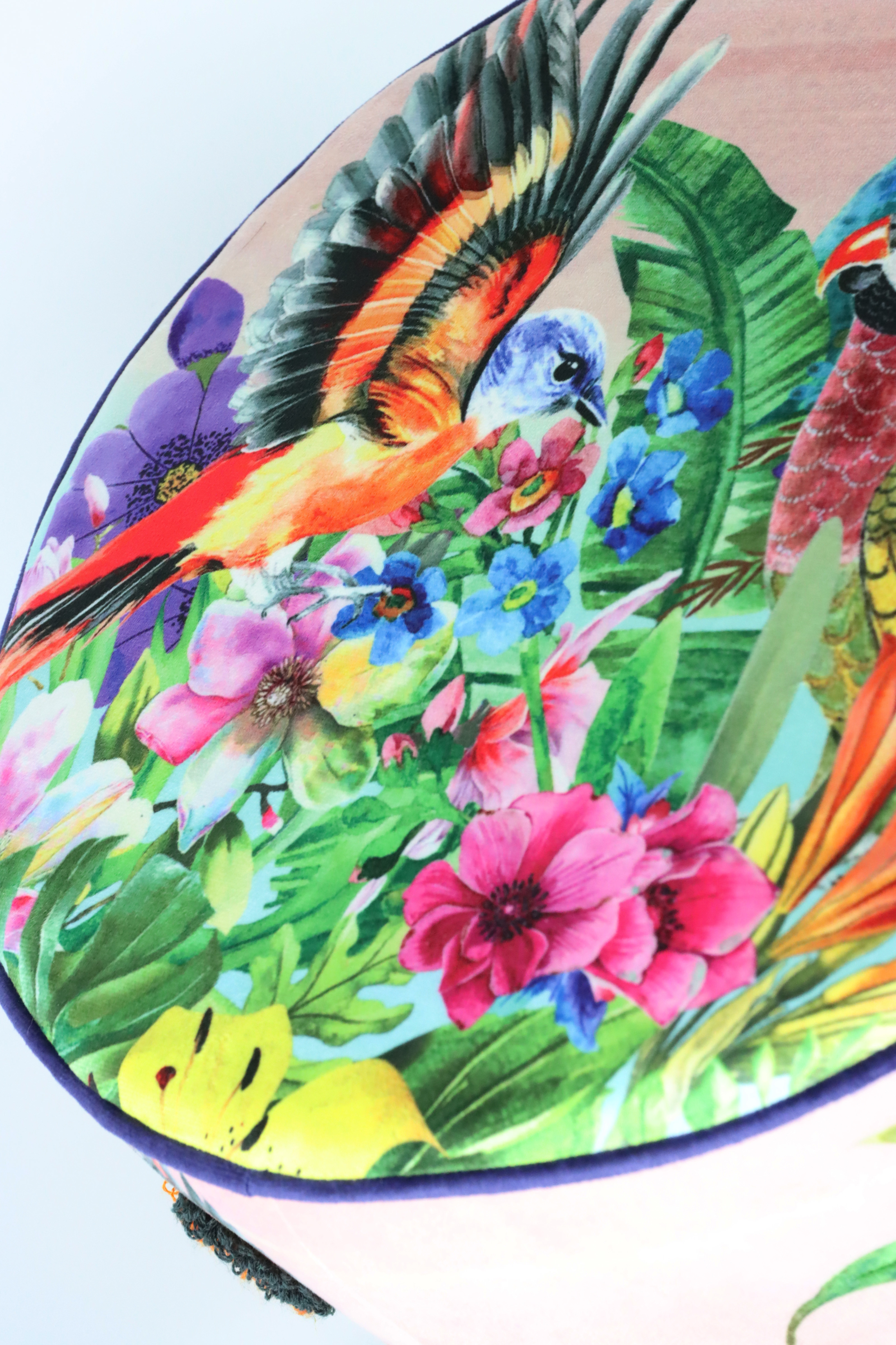 The POUF "PARADISE" measures approximately 45 cm and is made from a harmonious combination of MDF, robust wood, comfortable foam and luxurious polyvelvet. These carefully selected materials not only guarantee a durable product, but also offer unique seating comfort that will delight your customers. The extravagant paradise motif adds an exotic yet stylish touch to any room, attracting attention and enhancing the ambience.