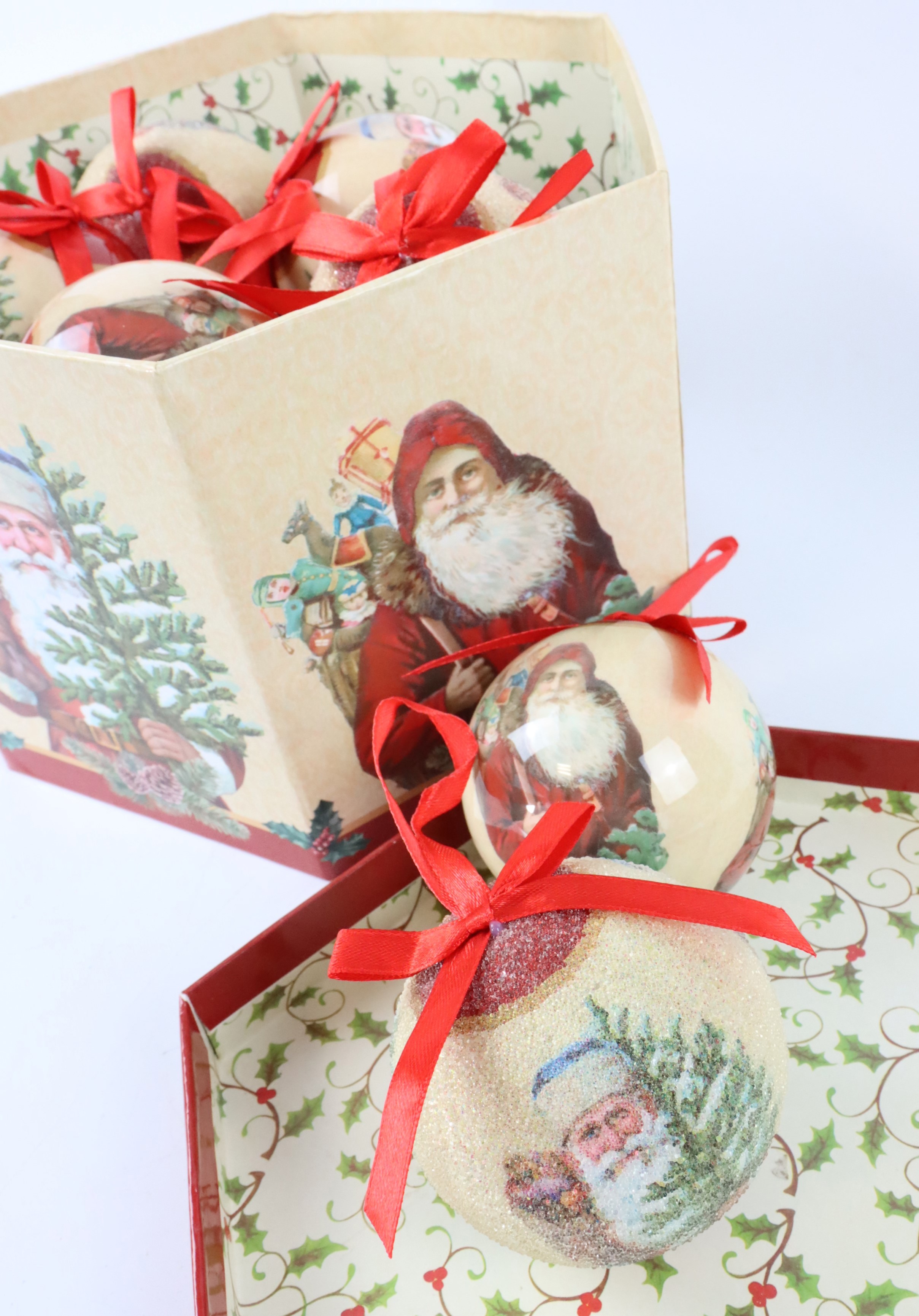 With a practical set of 14 pieces, the "Father Christmas" bauble box offers a wide range of decoration options. Be it for the Christmas tree or for decorating shop windows and shelves in retail stores - this product shows its effect everywhere.