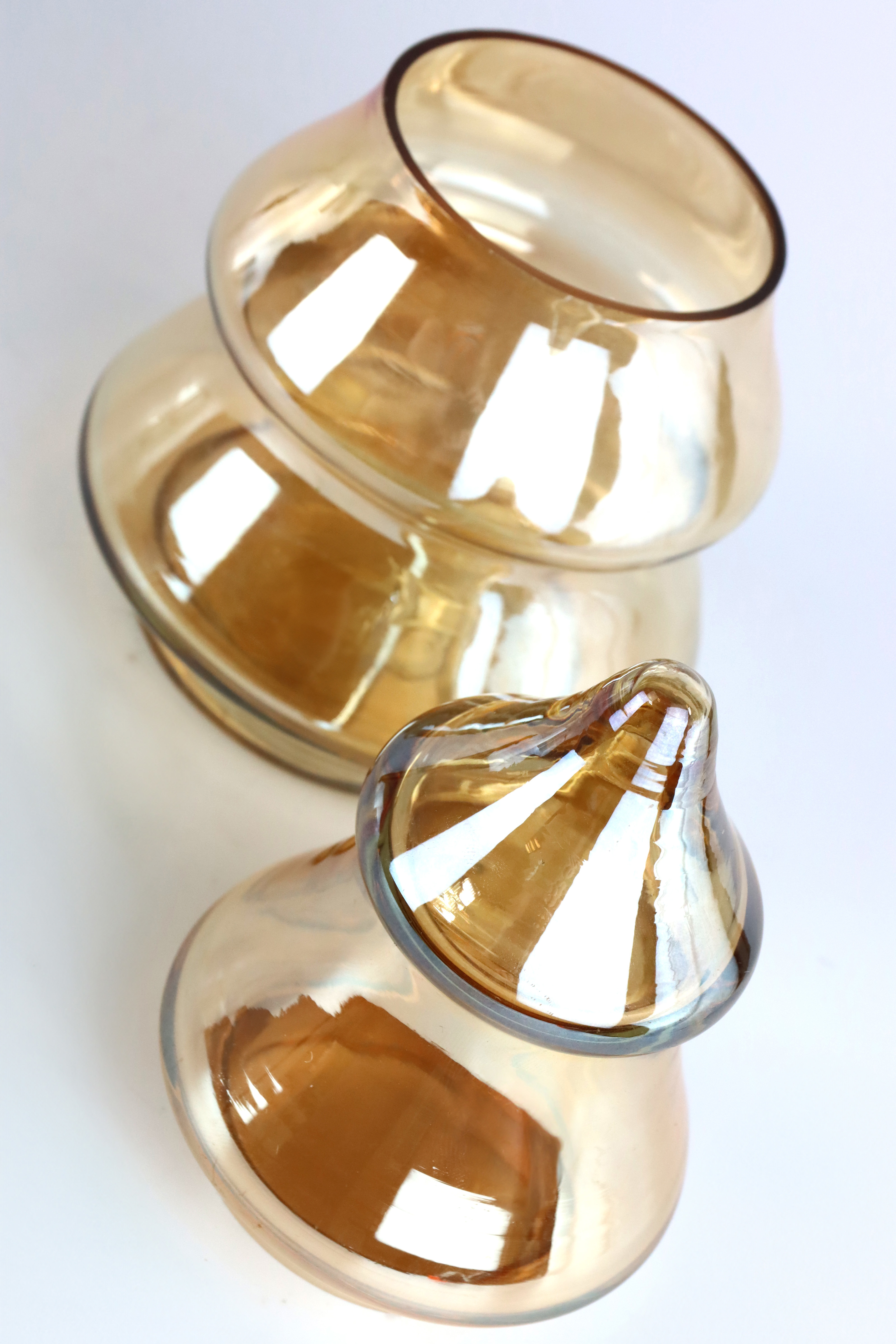 The "Tree" glass jar impresses with its elegant design and warm cream colour, which creates a pleasant atmosphere in any room. The special highlight of this glass jar is the hand-blown glass, which is decorated with a detailed and aesthetic tree motif. The glass jar is around 19 cm high and therefore fits on any table, windowsill or shelf. It can be filled with small Christmas baubles, sweets or tea lights, for example, making it an eye-catching addition to any Christmas decoration.