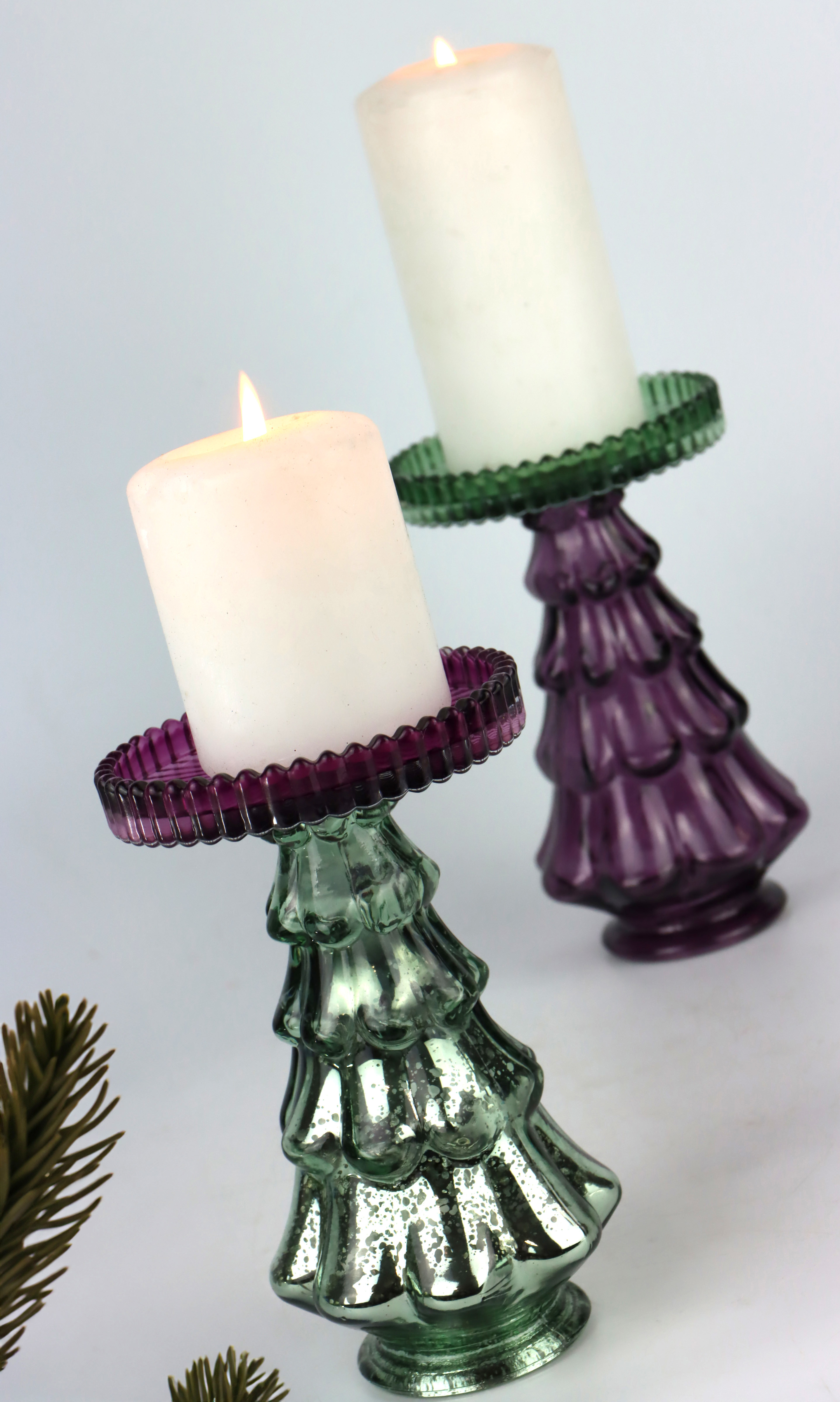 Our two-piece chandelier set, designed in the classic Christmas motifs of purple and green, captures the essence of the festive season and harmonises wonderfully with a variety of Christmas decorations. The stylised Christmas tree designs are not only a visual eye-catcher, but also convey a traditional, cosy flair that customers are looking for when decorating their living spaces. Thanks to the high-quality workmanship, the candlesticks are durable and robust, ideal for use over many Christmas seasons.