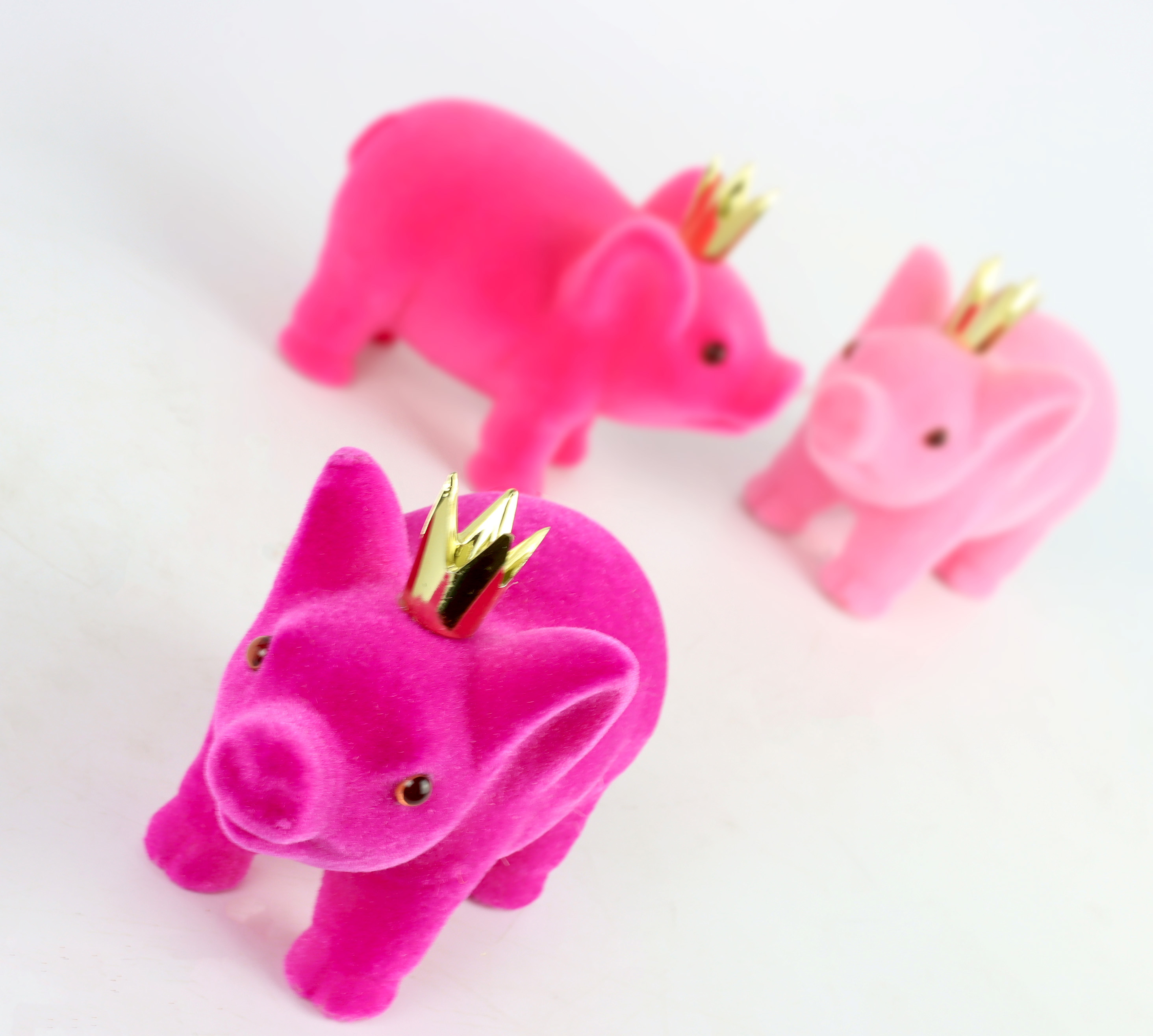- **Unique design:** Three pink pigs with a royal crown that immediately catch the eye.