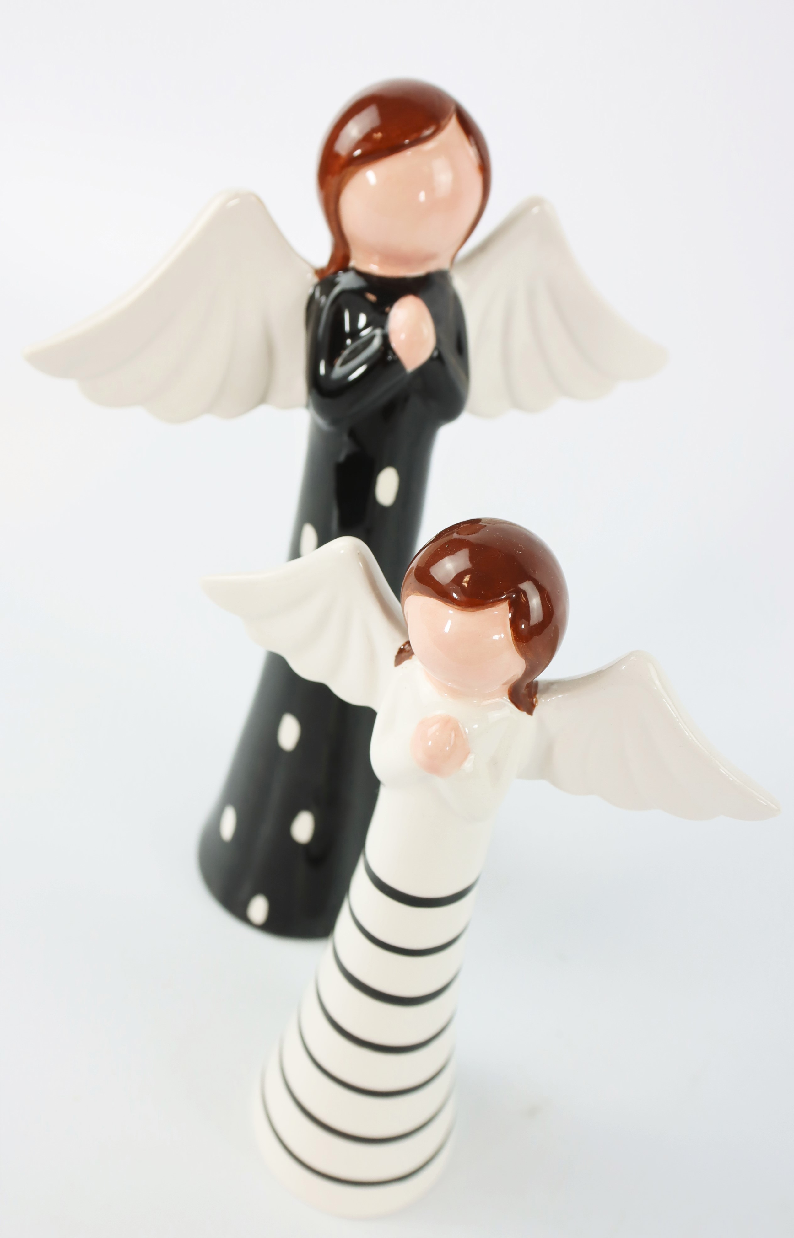 Let the festive magic of the Christmas season flow into your shop with our exclusive FIGURES "ENGELSK" S/2 set. These timeless angel figurines embody the essence of peace and contemplation with their elegant design and classic contrasting colours of black and white. Handcrafted from high-quality ceramic, the figurines lend expressiveness and elegance to any room - a perfect decoration for a stylish ambience.