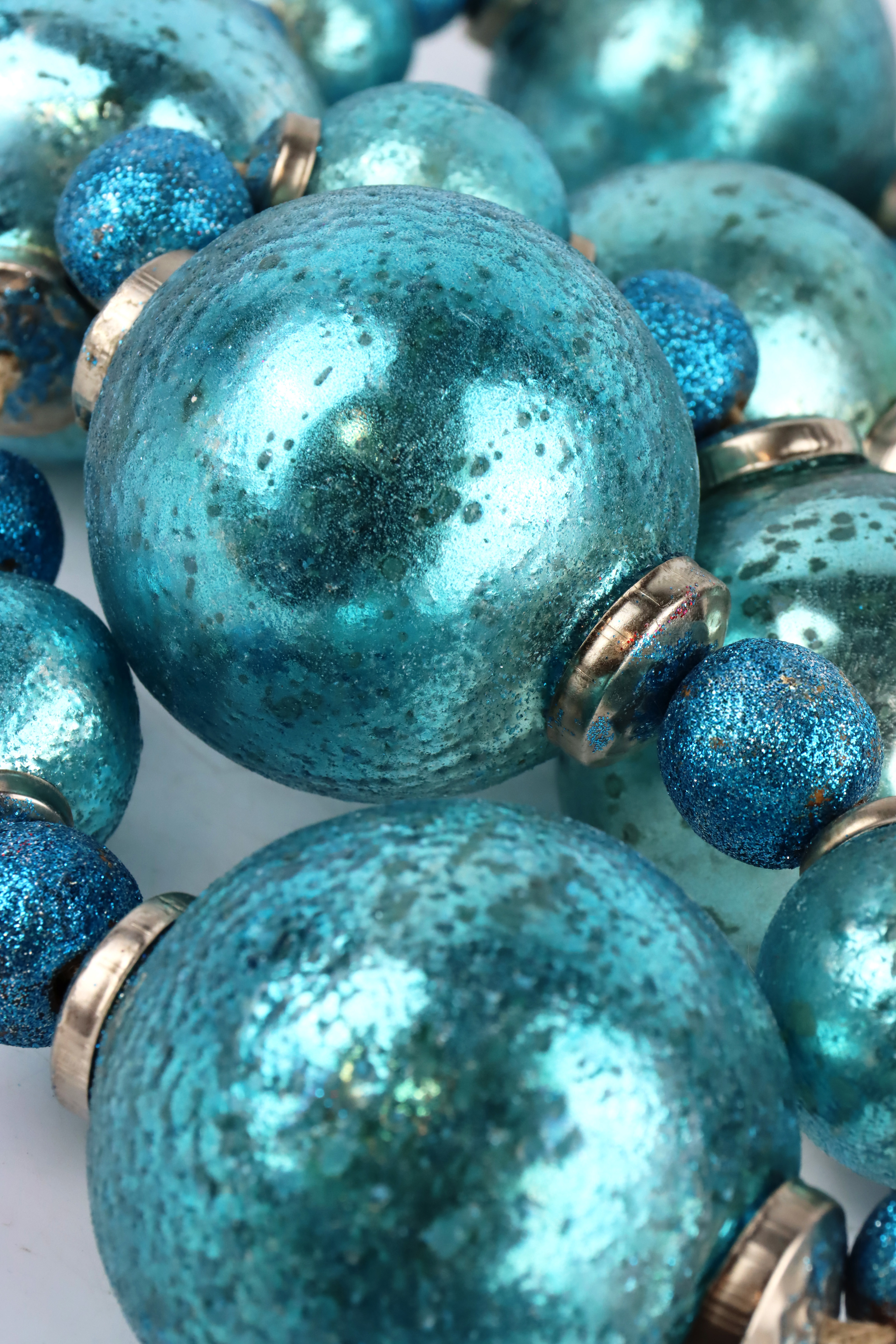 - Exquisite design: the "Carnival" ball garland enchants with its unique design made of blue-green glass and jute.