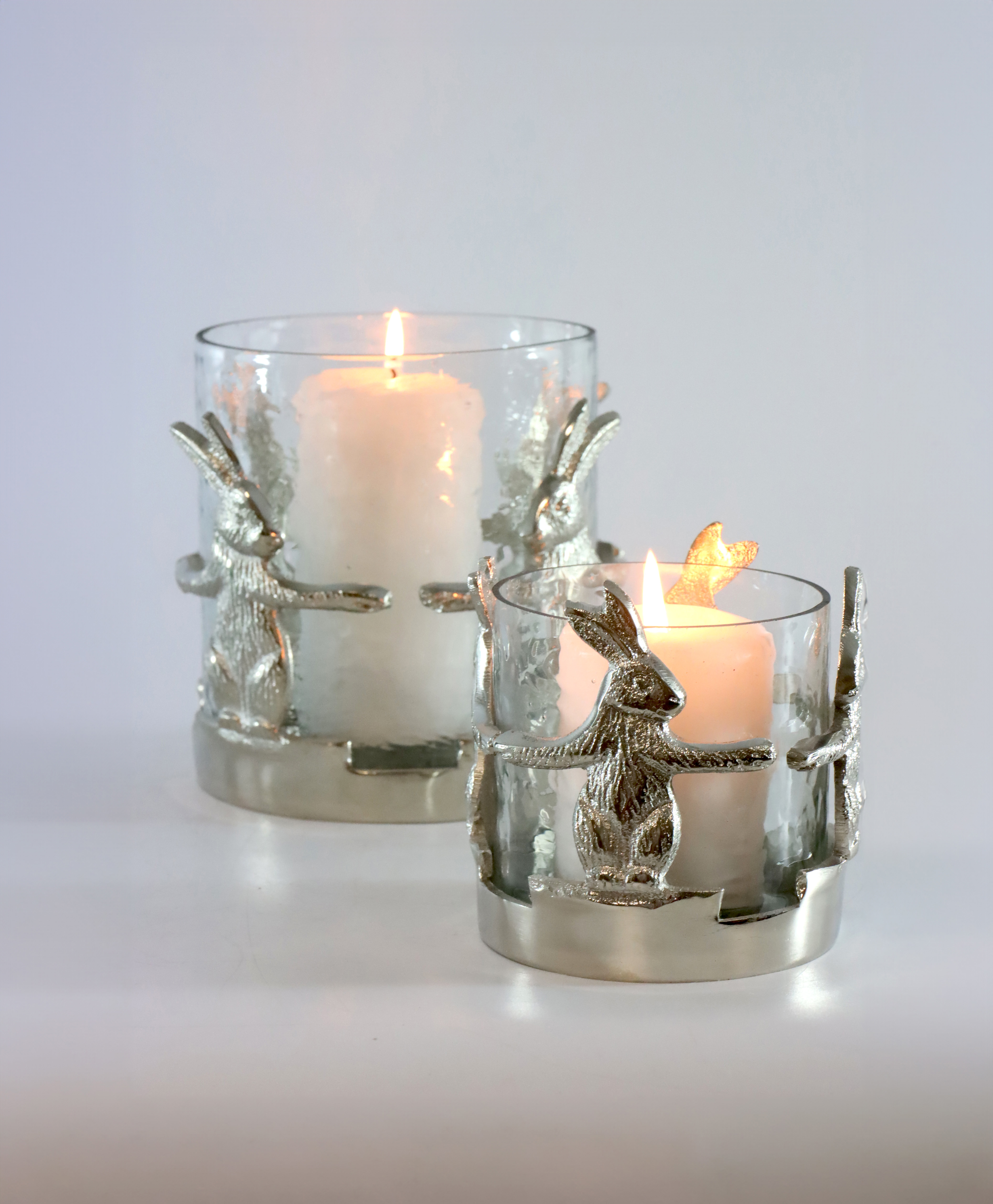 Discover our charming "BUNNY" S/2 lantern set, specially designed for the Easter period. This elegant lantern set, consisting of two differently sized lanterns measuring approx. 15 cm and 10 cm, is a highlight for any home and lifestyle interior. Made from high-quality nickel-plated aluminium, these lanterns combine timeless elegance with a modern twist - perfect for bricks-and-mortar retailers who want to offer their customers stylish Easter decorations.