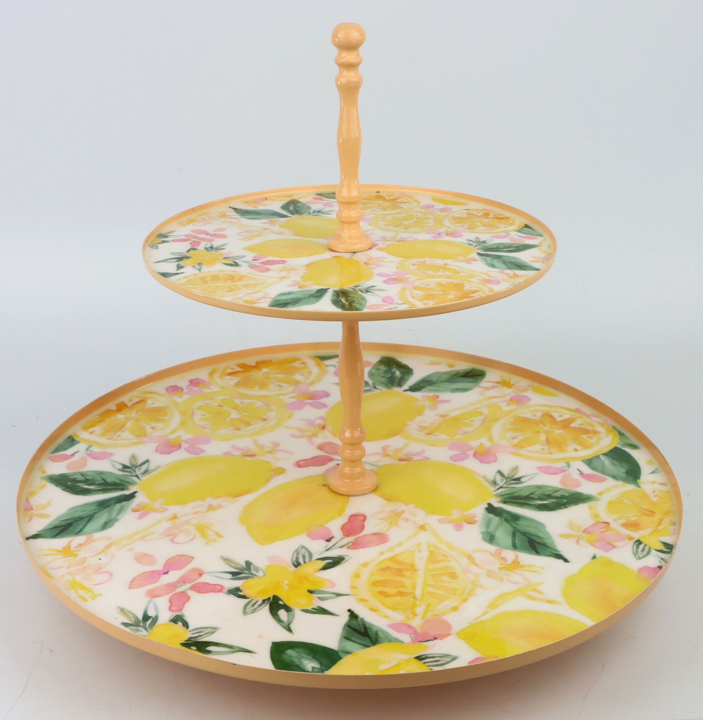 Our "Limone" etagere is specially designed for the spring/summer season and, with its fresh lemon design, brings vibrancy and colour to any setting, be it a living room at home or an elegant shop. The etagere has a diameter of around 40 cm, making it the ideal presentation surface for all kinds of products, whether decorative candles, small potted plants or handmade ceramic items.