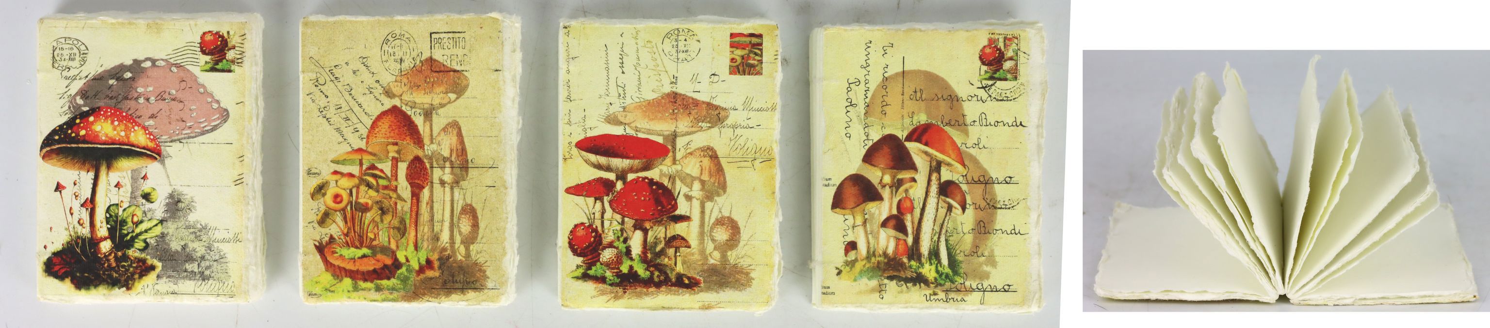 - Set of four notebooks in an appealing "lucky mushroom" design