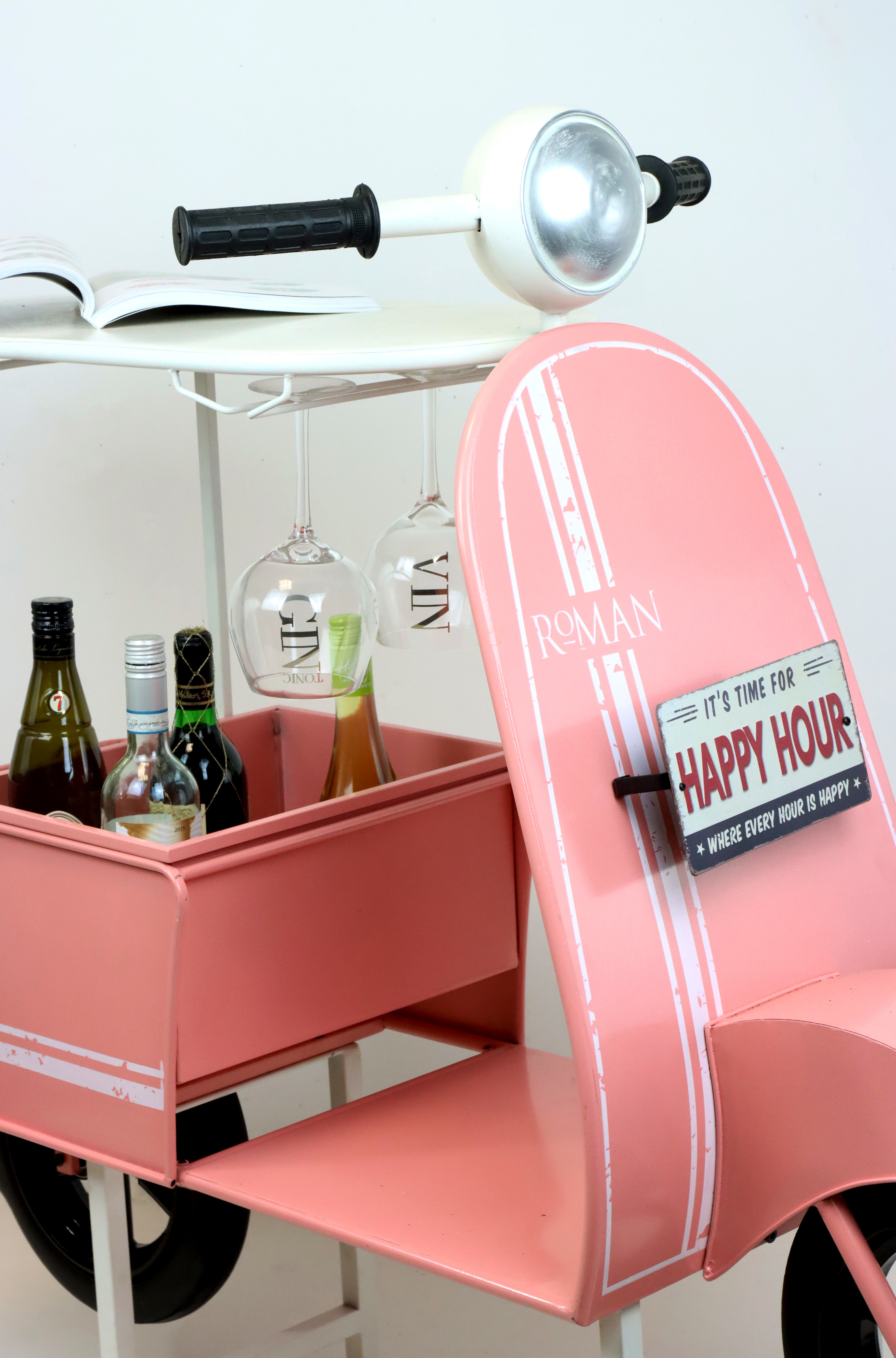 Experimente la simbiosis perfecta de funcionalidad y diseño con el ROLLERBAR "HAPPY HOUR". Esta moderna barra sobre ruedas es la compañera ideal para cualquier evento de primavera o verano. Con una impresionante altura de aprox. 121 cm, la barra rodante no sólo ofrece espacio suficiente para sus bebidas y aperitivos, sino que también se convierte en la elegante pieza central de cualquier jardín o patio. Fabricada en robusto hierro y plástico, encarna tanto la estabilidad como la elegancia. El suave color rosa realza la estética de cualquier zona interior o exterior y subraya el sofisticado diseño de esta elegante barra móvil.