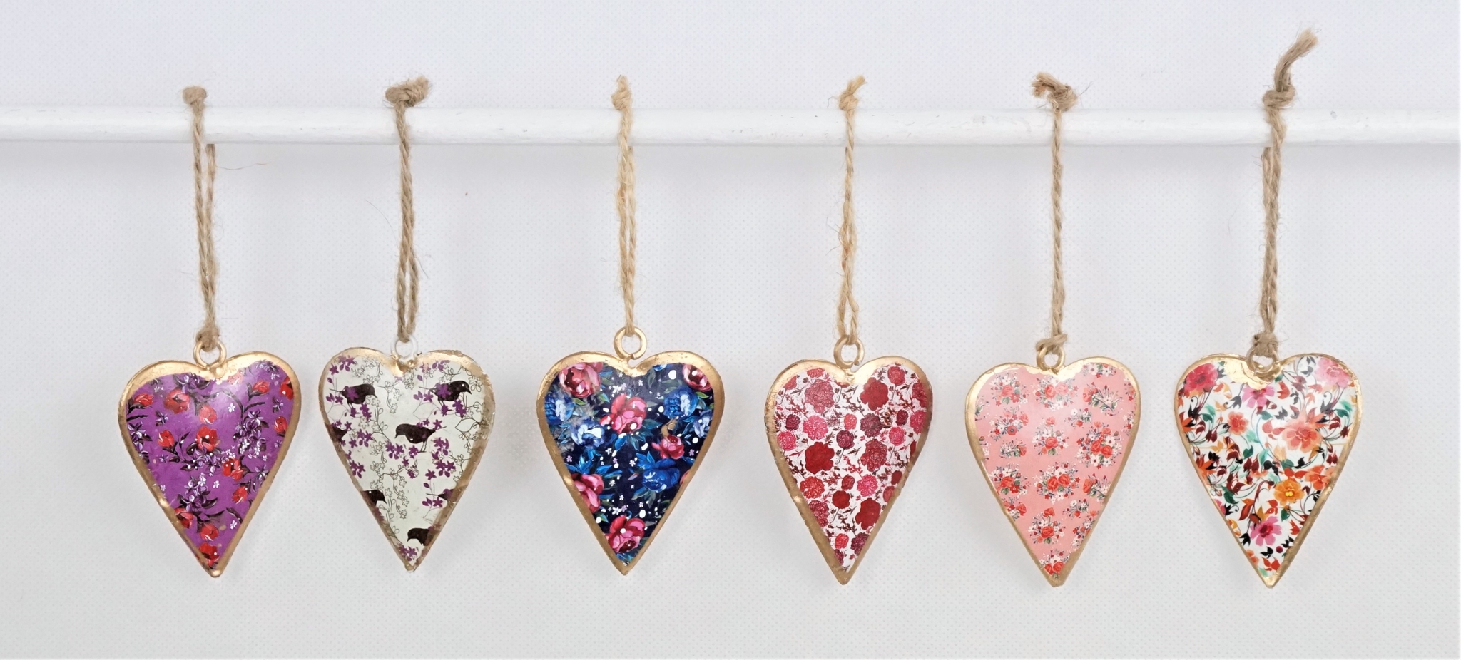 - El juego contiene seis colgantes decorativos en forma de corazón