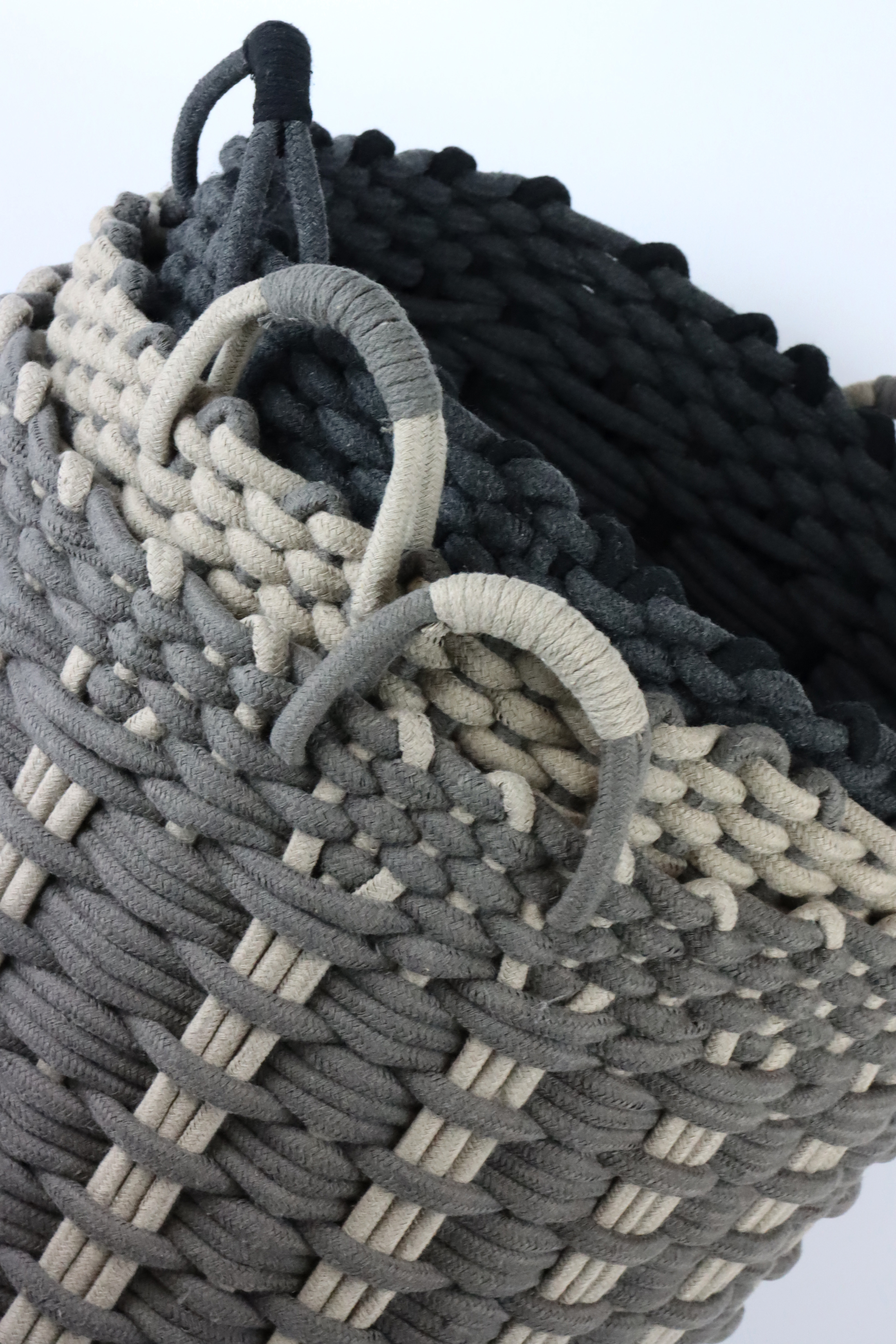- Juego compuesto por tres cestas en los atractivos colores gris, marrón y marrón claro.