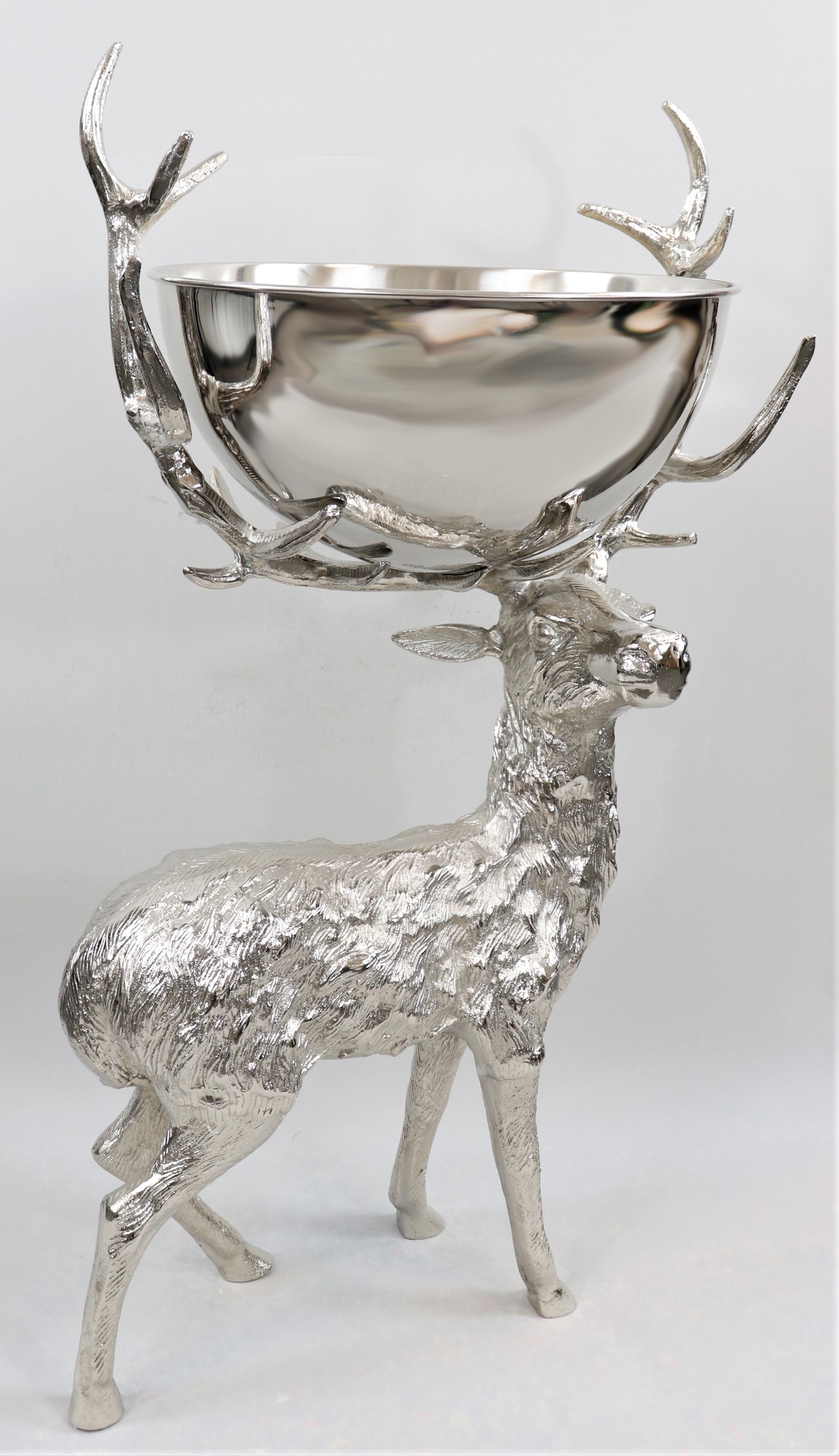 Complemente el estilo otoñal o invernal de la decoración de su papelería con el llamativo ciervo con cuenco de aluminio. Su atractivo color plateado y sus generosas dimensiones de aprox. 86 cm hacen de esta versión de diseño un auténtico reclamo. Nuestro producto con número de artículo 9798 lleva la elegancia natural del bosque directamente a las zonas de estar y estilo de vida de sus clientes.