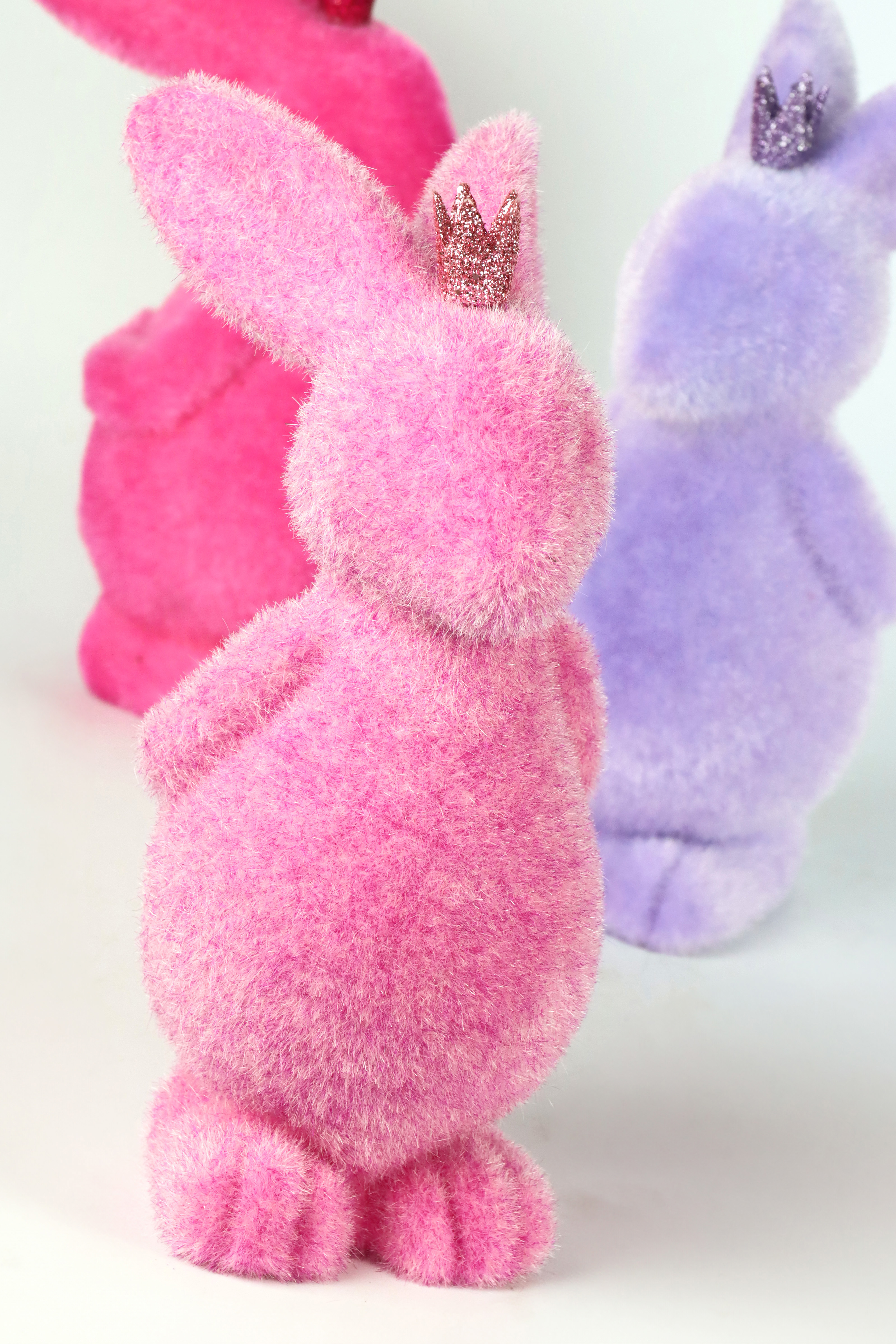 ES### Descripción del producto: Set de conejitos "FLOCAGE" S/3 - Decoración de Pascua en rosa y morado