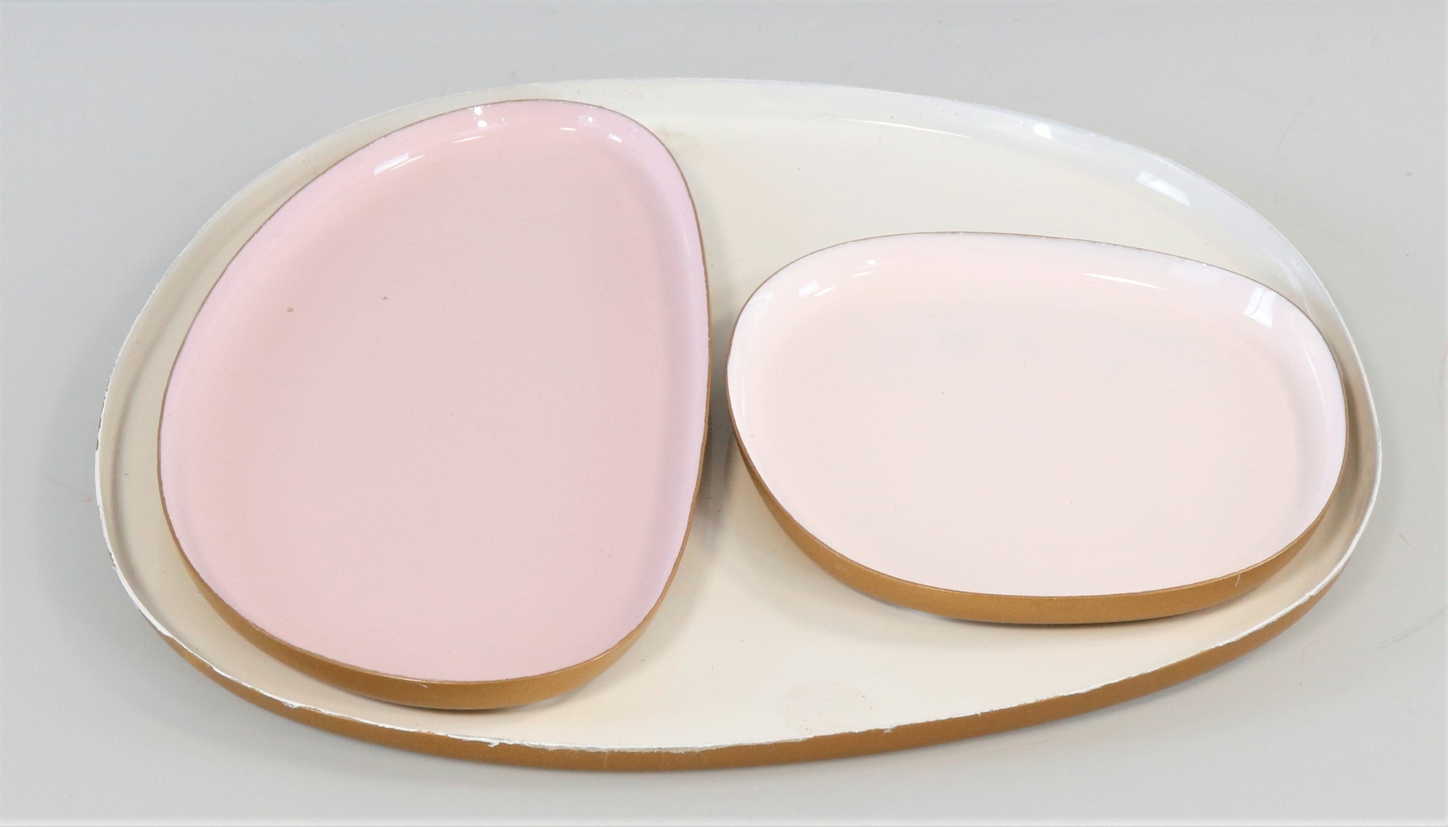 Chaque set contient trois plateaux de différentes tailles : Grand (environ 26 cm), Moyen (environ 21 cm) et Petit (environ 13 cm). Cette taille variable offre des possibilités d'utilisation flexibles dans toutes les situations. Qu'il s'agisse d'un plateau pour le petit-déjeuner, d'une plate-forme de décoration ou d'une aide au service, les plateaux en métal sont polyvalents et constituent donc un must pour tout détaillant souhaitant proposer des produits de qualité et tendance à ses clients.
