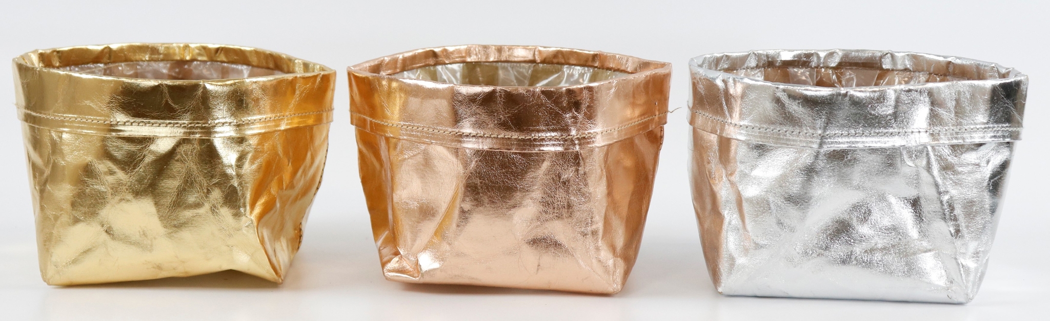 Notre set se compose de trois paniers dans les couleurs fascinantes or, bronze et argent. Avec leur look métallique moderne, ils apportent une touche de luxe à tout aménagement de magasin. Grâce à l'utilisation de matériaux de qualité supérieure comme le papier et le plastique, les paniers ne sont pas seulement agréables à regarder, mais aussi durables et résistants. Chaque panier a une taille d'environ 13 cm ; idéal pour la présentation sur les comptoirs, les étagères ou les présentoirs de fenêtre.