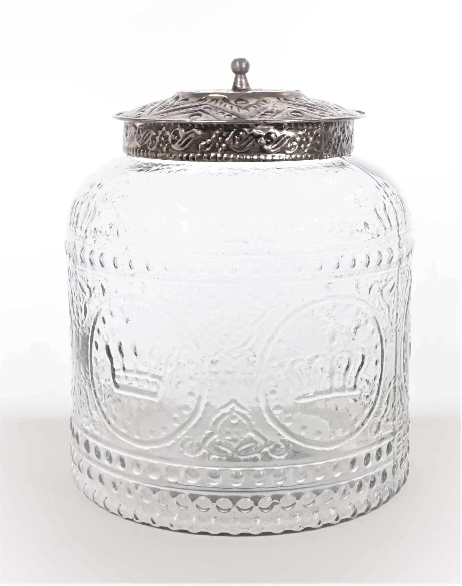Fabriquée en verre de qualité supérieure, la boîte en verre "Ravenna" séduit par son aspect clair et noble. Le couvercle argenté, décoré de motifs orientaux détaillés, confère à cet accessoire une note luxueuse. Que ce soit dans le salon, la chambre à coucher ou la cuisine, cette boîte attire tous les regards et peut être utilisée de multiples façons. Elle est idéale pour ranger des bijoux, des épices, des friandises ou de petits accessoires, tout en apportant ordre et style à vos espaces de vente.