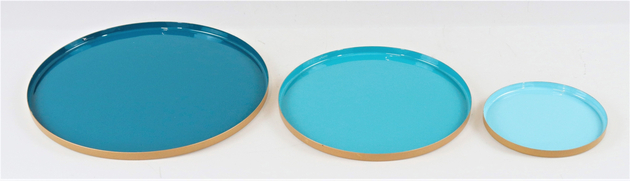 Découvrez les aides parfaites pour votre commerce de détail stationnaire dans le domaine de l'habitat et du style de vie avec notre set de plateaux exclusif "DELUXE" dans le coloris bleu frais. Ce set de 3 pièces de haute qualité, composé de plateaux de 14 cm, 23 cm et 29 cm de diamètre, est idéal pour présenter de manière attrayante les produits et accessoires les plus divers dans votre magasin - des bougies décoratives aux compositions florales en passant par les sucreries raffinées ou les mélanges de thé sélectionnés.