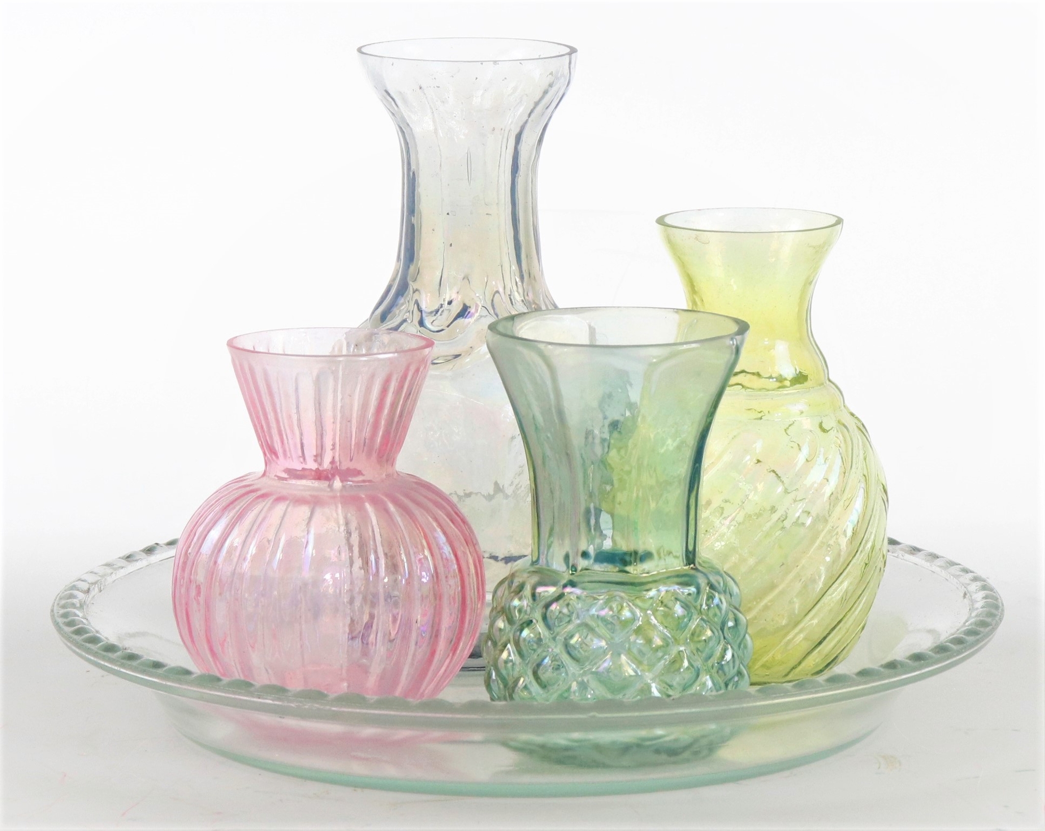 Le plateau rond en verre fourni assure la stabilité et offre en même temps un niveau supplémentaire de présentation. Utilisez-le comme plateforme centrale pour des décorations créatives afin d'augmenter l'attractivité de vos produits. Que ce soit en vitrine ou dans l'espace de vente, l'ensemble de vases "Poésie" attirera à coup sûr tous les regards.