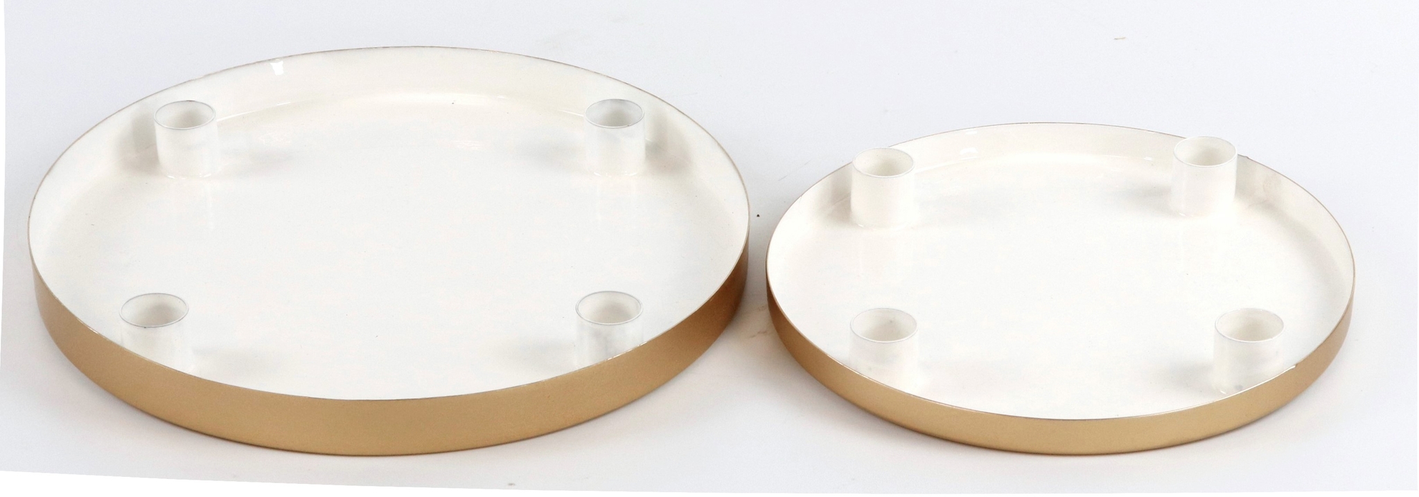 Nos bougeoirs "Deluxe" sont d'un blanc éclatant qui attire le regard de manière claire et moderne, que ce soit sur une table à manger, dans une vitrine ou sur une étagère. Fabriqués en métal résistant, nos bougeoirs promettent longévité et stabilité. Avec un diamètre de 25 cm et 20 cm, ils sont la base parfaite pour quatre bougies de votre choix - créez un jeu de lumière harmonieux à tout moment de la journée.