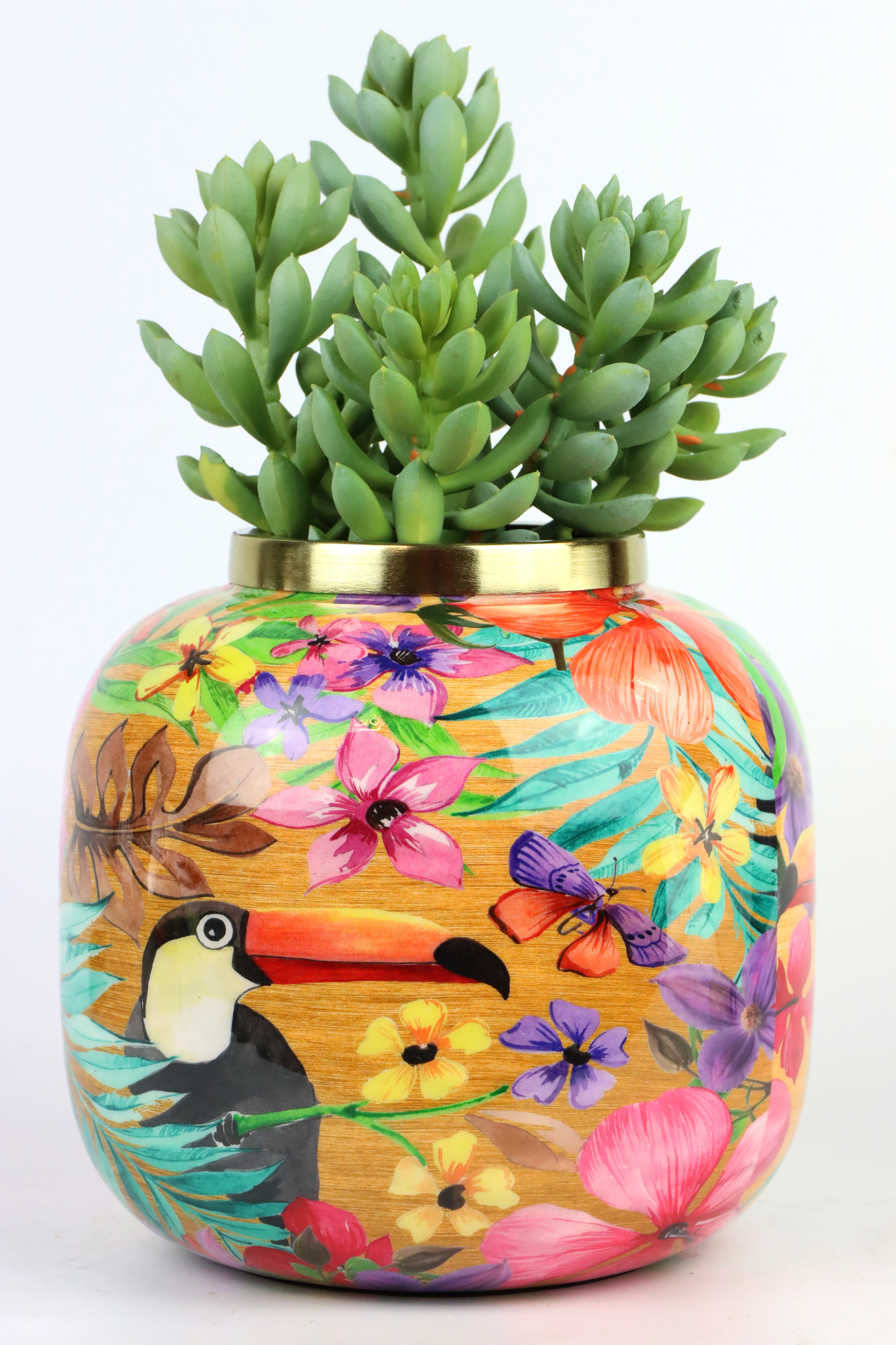 Le vase "Paradise Bird" n'est pas seulement un élément purement décoratif, c'est aussi un produit fonctionnel, idéal pour la présentation de compositions florales. Le fer assure la stabilité du vase tout en lui conférant une certaine élégance et un rayonnement intemporel. Placé sur une table ou dans l'entrée de votre magasin, la représentation vivante de l'oiseau de paradis symbolise la liberté et la beauté, et se combine parfaitement avec d'autres décorations printanières et estivales.