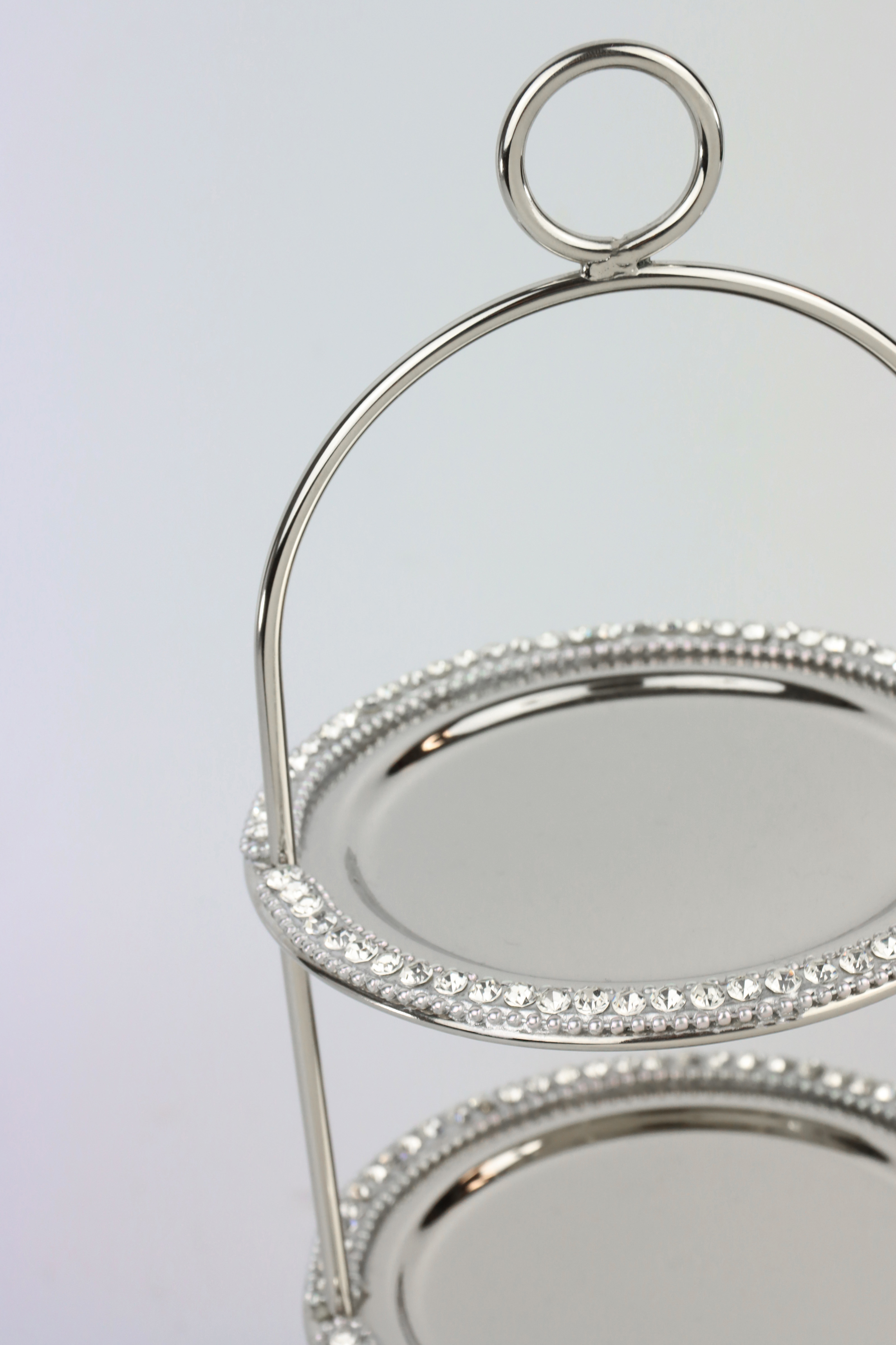 Ajoutez une touche d'élégance à votre commerce de détail dans le domaine de la maison et du style de vie avec l'ETAGERE "CRISTALLO". Cette exquise étagère à trois étages en argent brillant n'est pas seulement un accessoire luxueux, mais aussi un point fort fonctionnel qui présente vos marchandises de manière élégante.