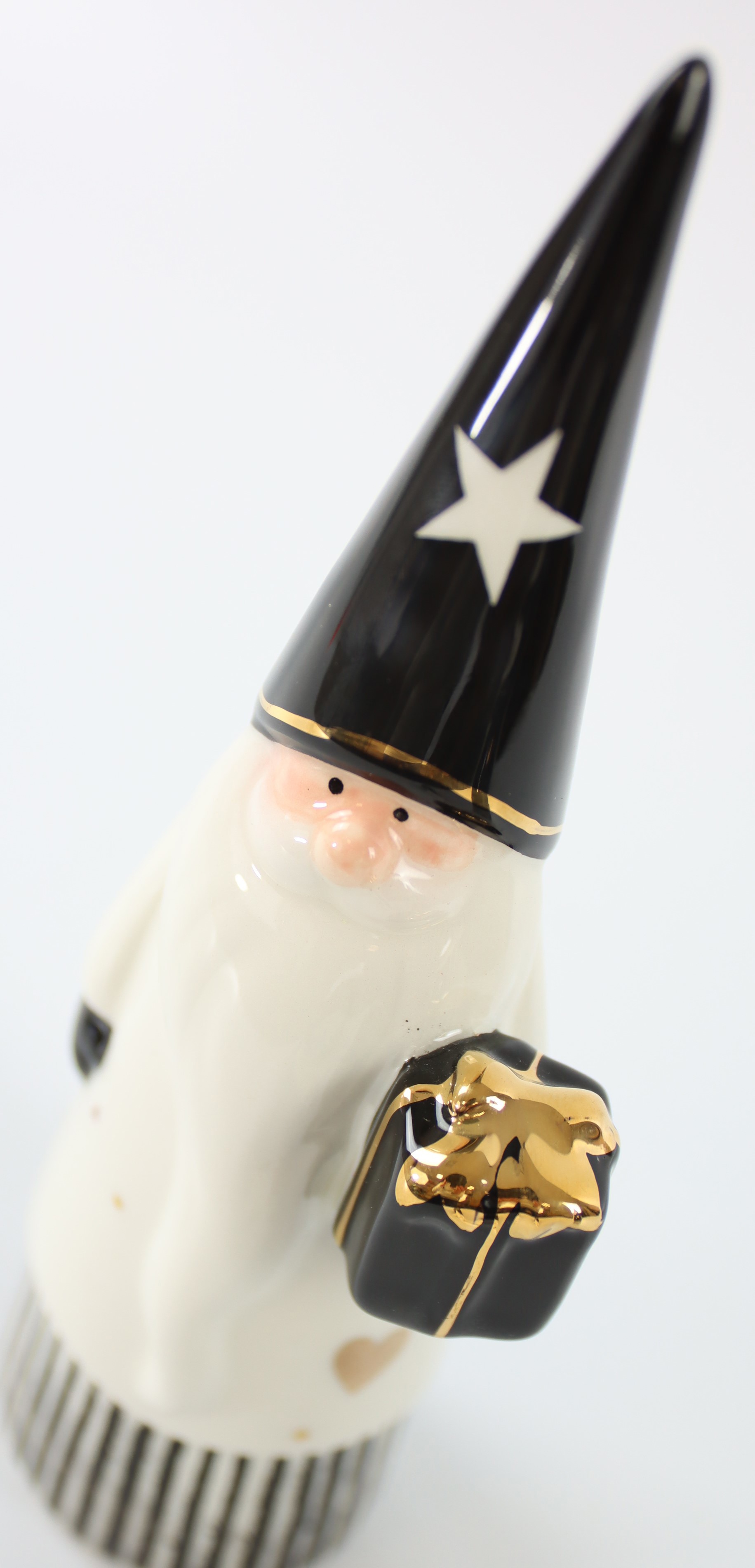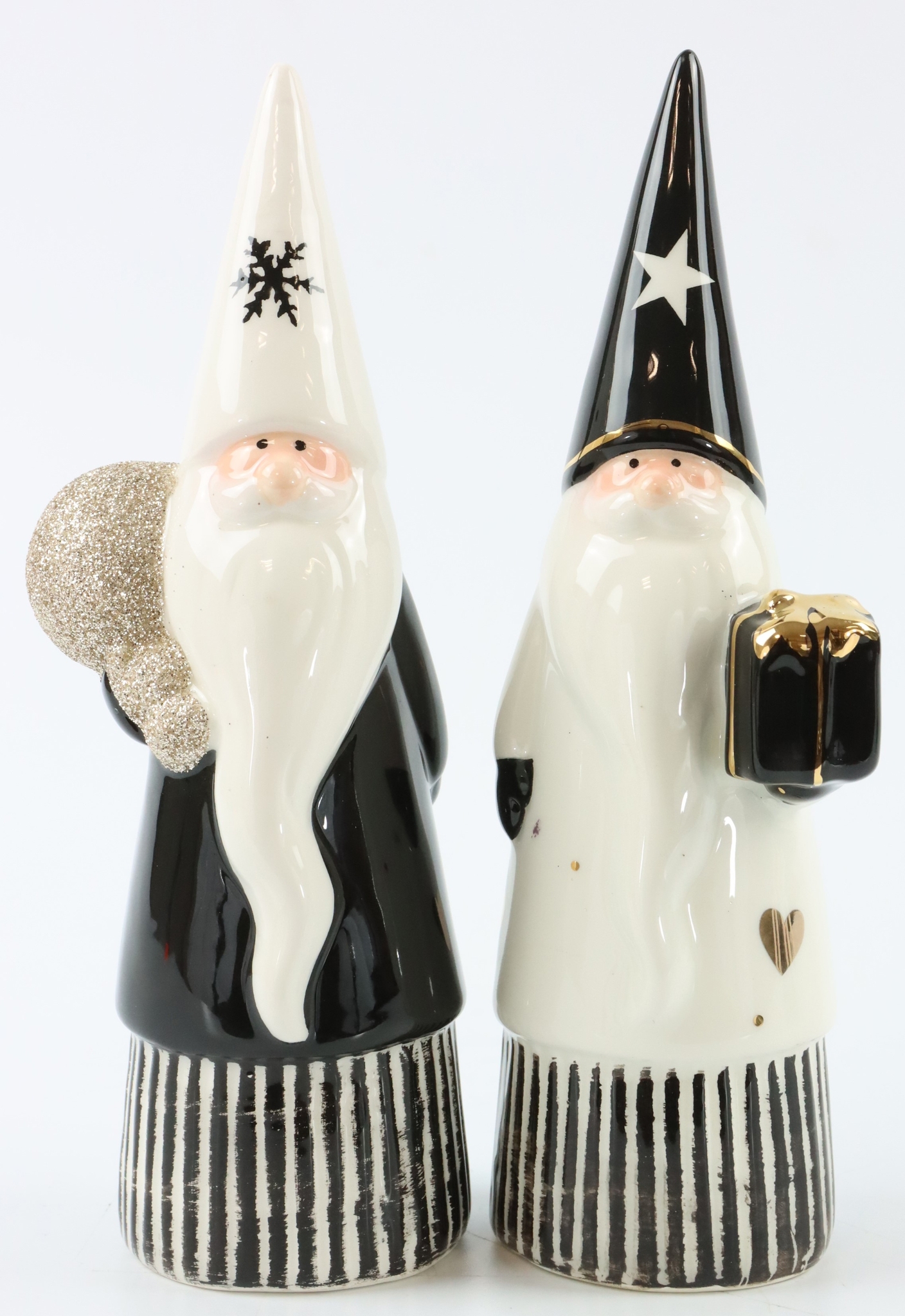 - Design moderne : Pères Noël uniques en céramique noire et blanche.