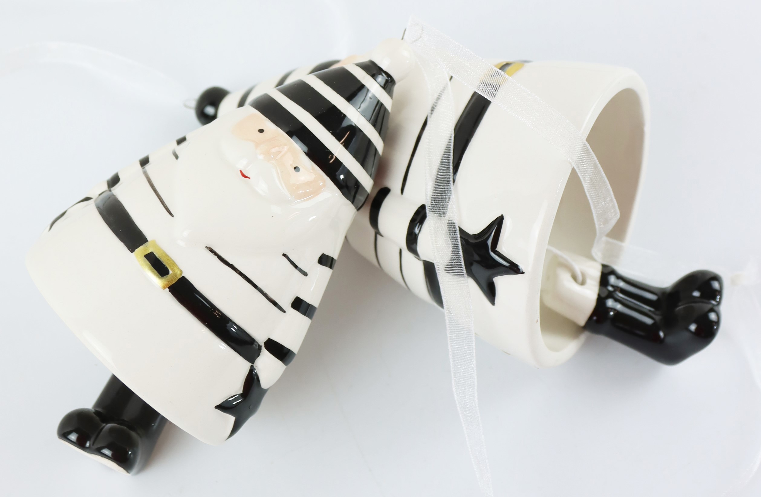 Vivez la magie de Noël avec notre set de cloches "TOMTE" unique en son genre, composé de deux pièces. La combinaison de l'artisanat traditionnel et du design moderne fait de ce set un élément indispensable pour toute décoration de fête au détail. Ce set se compose de deux élégantes cloches de lutin dans les couleurs classiques blanc et noir, fabriquées en céramique de haute qualité. D'une taille d'environ 12 cm et 10,5 cm, elles s'intègrent parfaitement dans toute décoration et attirent tous les regards.