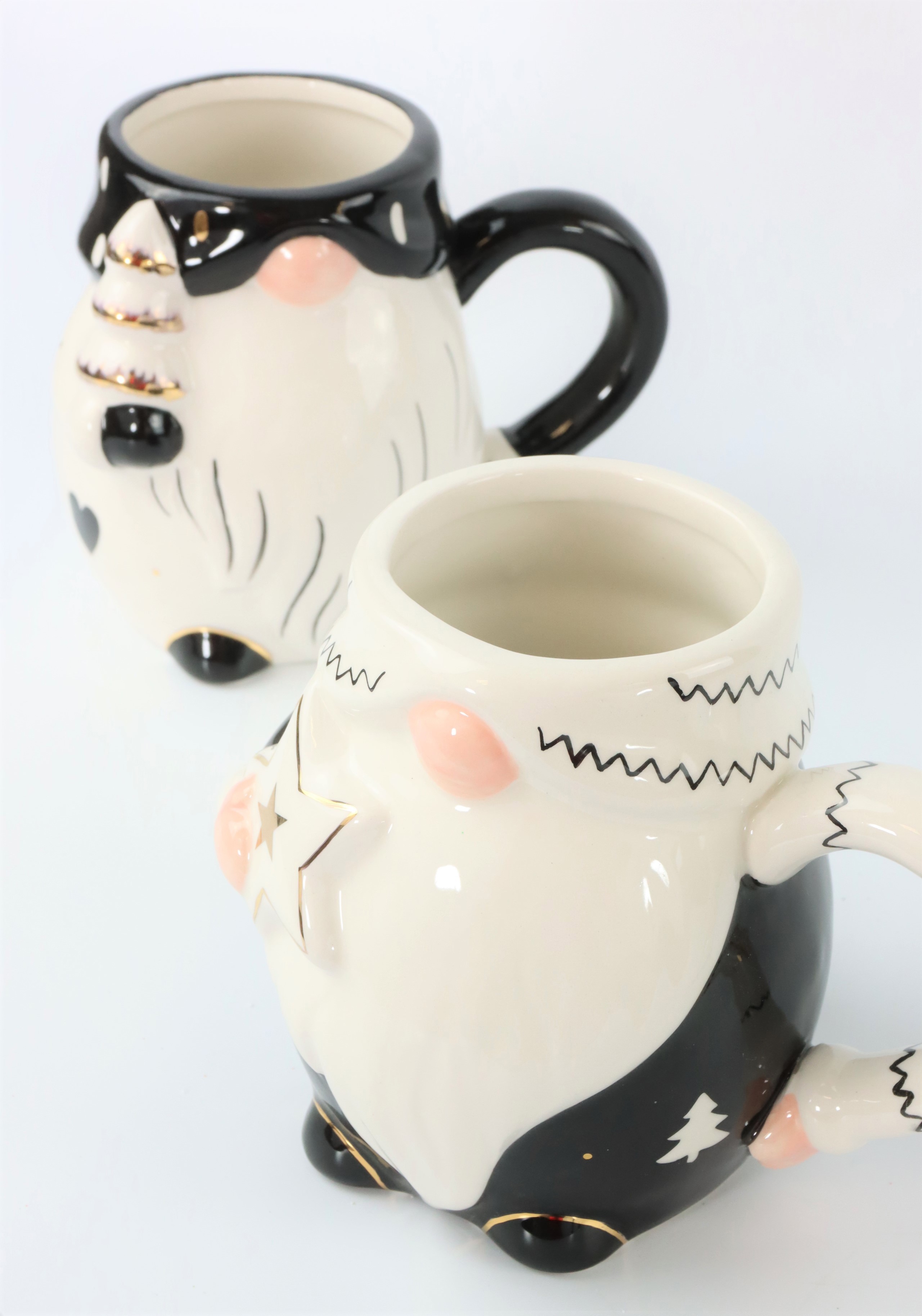 Chaque gobelet, d'une hauteur d'environ 14,5 cm, dégage une charmante simplicité qui rappelle les motifs nordiques traditionnels des lutins. Les couleurs sobres en noir et blanc s'intègrent parfaitement dans toute cuisine ou salon moderne et confèrent à tout décor une touche de convivialité hivernale. Ces tasses à anse n'attirent pas seulement le regard, elles sont également pratiques pour déguster des boissons chaudes pendant les mois froids. Que ce soit pour un chocolat chaud le matin ou une tisane apaisante le soir, ces tasses en céramique de qualité supérieure passent aussi bien au micro-ondes qu'au lave-vaisselle et sont donc idéales pour un usage quotidien.