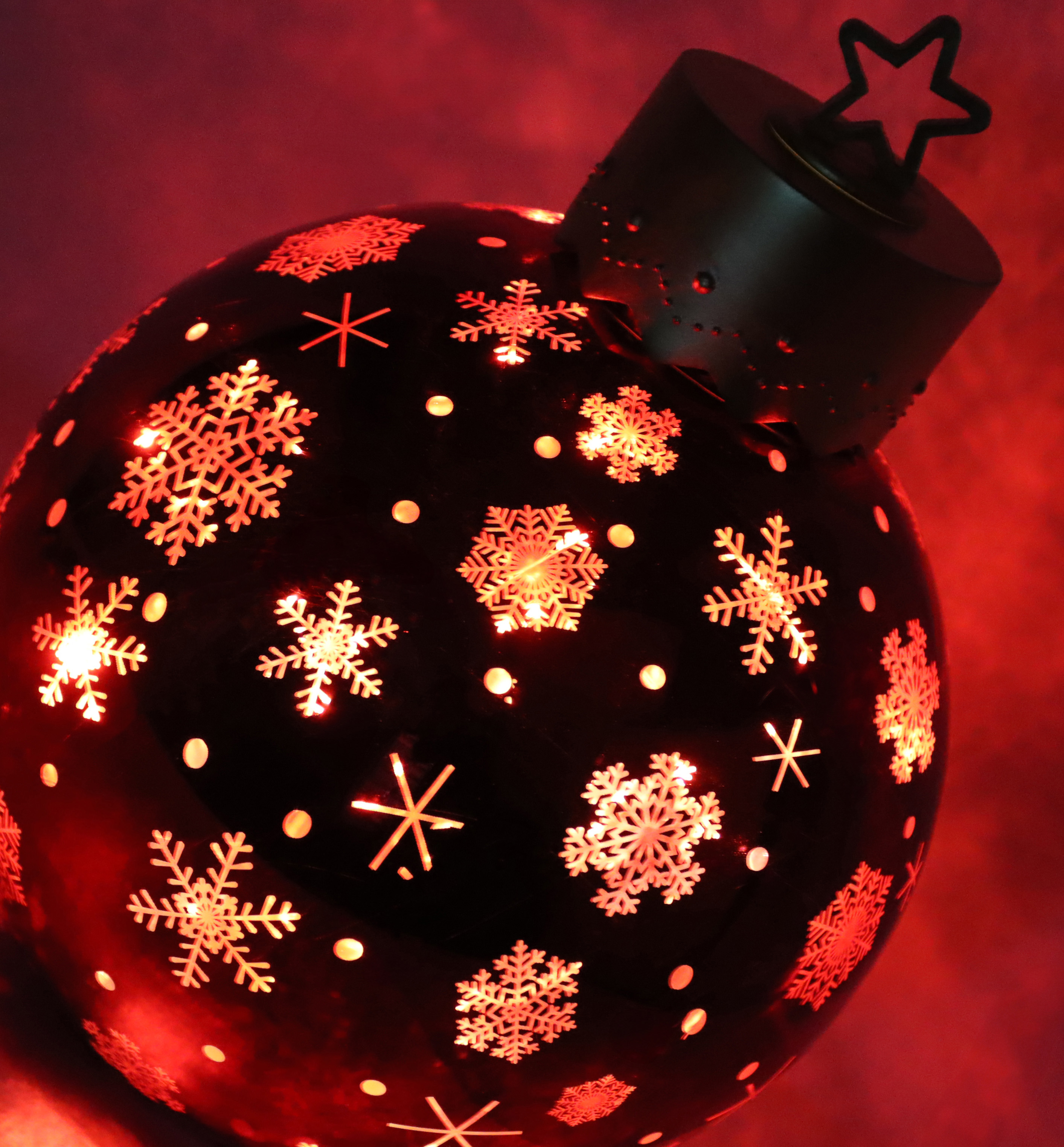 La boule lumineuse LED "Snowflake" est fabriquée en verre de haute qualité et en plastique robuste, ce qui souligne sa longévité et sa résistance. La boule artistiquement décorée en rouge est ornée de flocons de neige scintillants qui créent une sensation de confort et d'accueil dans n'importe quelle ambiance. Les LED intégrées fournissent une lumière chaude et atmosphérique qui met remarquablement en valeur votre vitrine et crée une atmosphère chaleureuse qui attire les acheteurs.