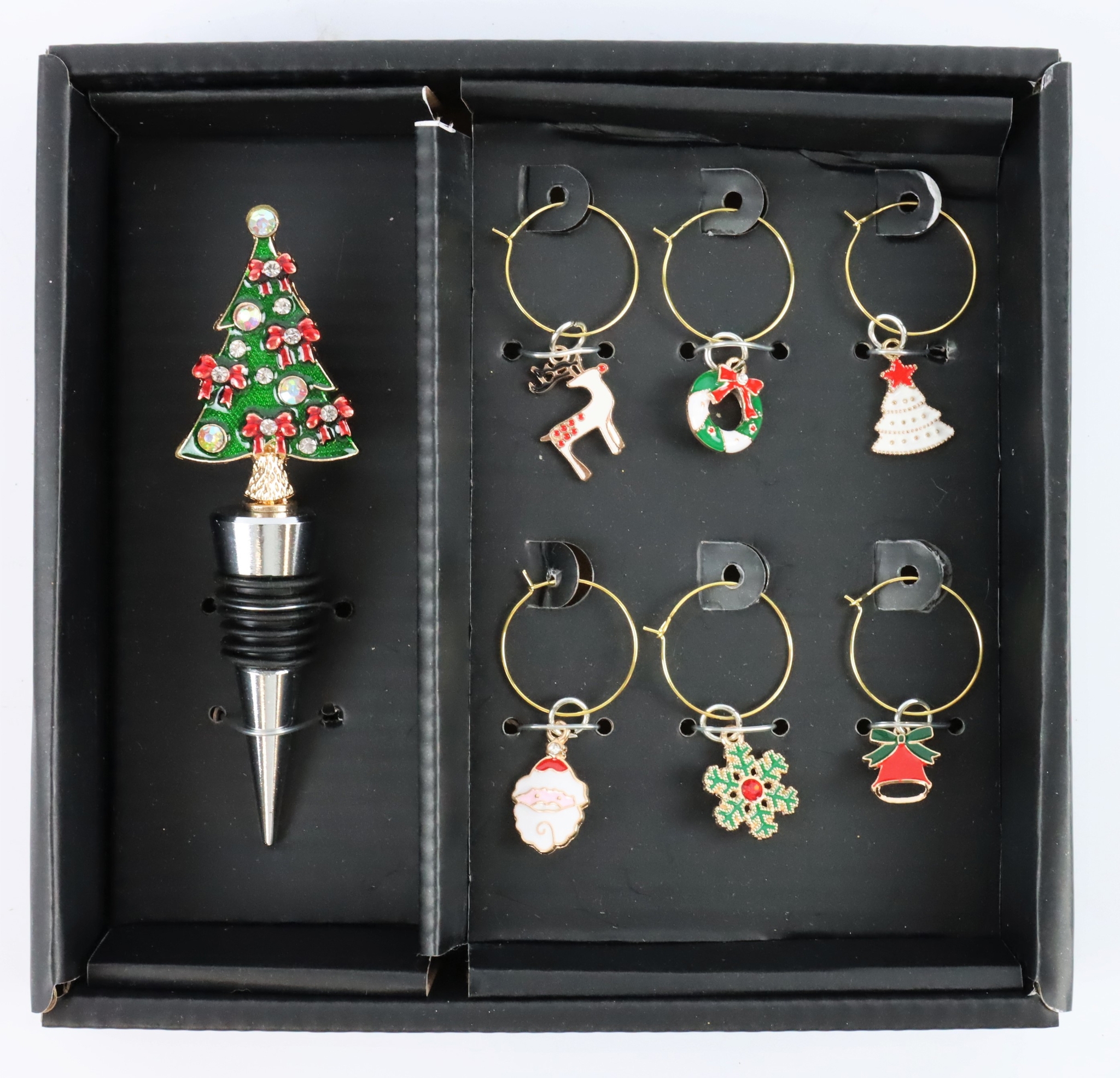 FRAugmentez l'éclat de la fête avec le charmant set de bouchons de bouteille "TREE" (référence : 5905), composé d'un bouchon de bouteille et de 6 marqueurs de verre. Conçu spécialement pour la période de Noël, ce set de 7 pièces enrichira à coup sûr tout ensemble festif et ravira les toasts de Noël d'une manière évocatrice.