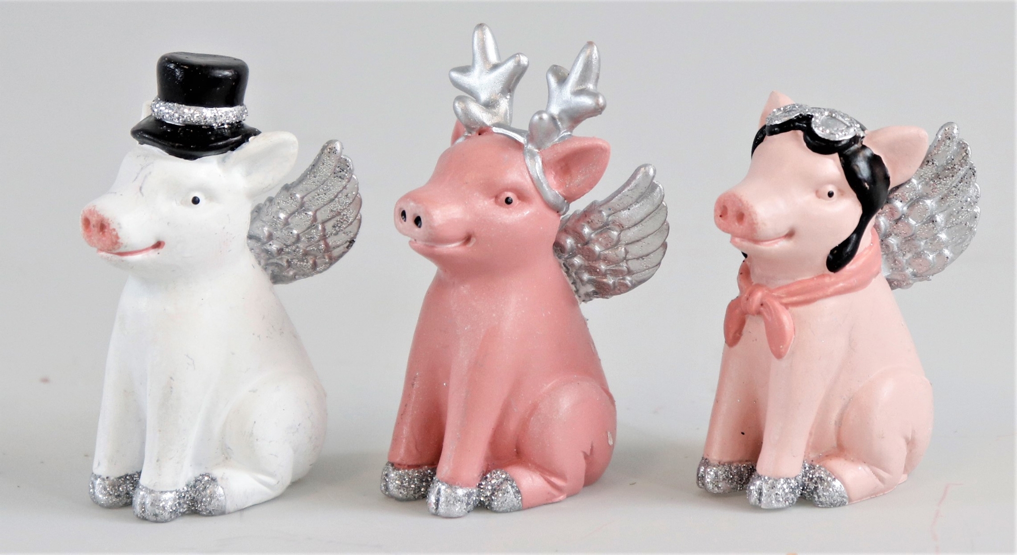 Mots-clés pertinents pour le référencement : figurines de décoration, accessoires pour la maison, articles cadeaux, figurines de cochons volants, décoration d'intérieur, produits lifestyle, commerce de détail stationnaire, collection automne/hiver, figurines en polyrésine, magasin de décoration intérieure et lifestyle.